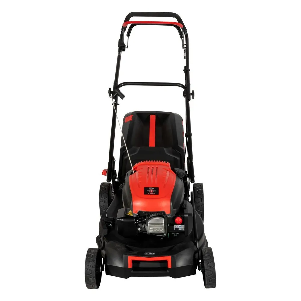 Kosačka s výkonným štvortaktným motorom, štartovanie bez námahy vďaka reverznému štartu, ergonomicky tvarovaná rukoväť s dvojpolohovým nastavením výšky. Podvozok z oceľového plechu s práškovým nástrekom. Sedempolohové centrálne nastavenie výšky kosenia. Zberný vak na trávu s objemom 60 ls ukazovateľom stavu naplnenia. Palivové čerpadlo Primer. Pohon zadných kolies na guličkových ložiskách prostredníctvom plynule prepínateľného prevodového stupňa, bočné vyhadzovanie, prípojka na čistenie. Na kosenie trávnika s plochou do 1400 m2.