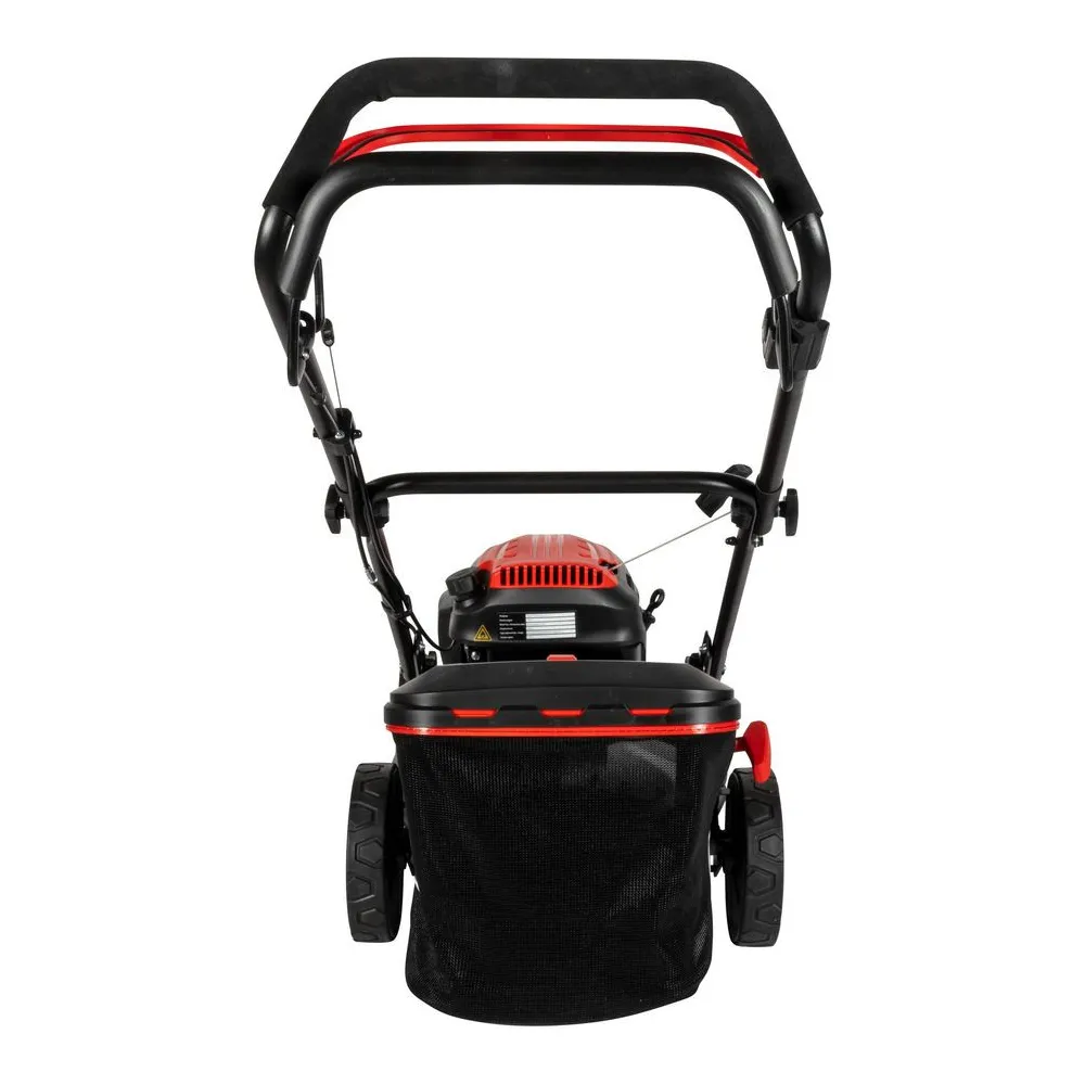 Kosačka s výkonným štvortaktným motorom, štartovanie bez námahy vďaka reverznému štartu, ergonomicky tvarovaná rukoväť s dvojpolohovým nastavením výšky.