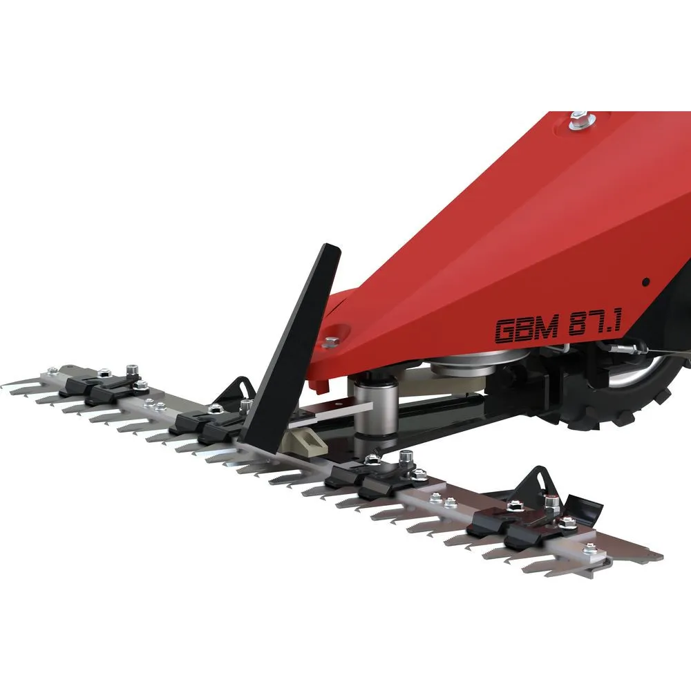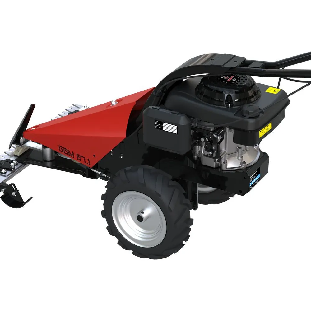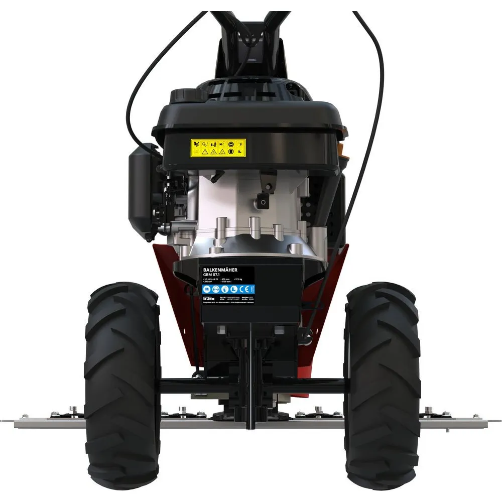 Lištová kosačka s vysokovýkonným štvortaktným motorom na kosenie v ťažko dostupnom teréne a na veľkých plochách s vysokou trávou, kosenie svahov, pastvín, výbehov. Žacia lišta s pevným a pohyblivým nožom pre čistý rez a dobrú kvalitu kosenia. Pohyblivé rameno na vyrovnanie nerovností terénu. Výškovo nastaviteľné vodiace držadlo s tlmenými vibráciami pre prácu bez únavy. Regulátor otáčok s integrovaným zapínačom/vypínačom. Palivové čerpadlo Primer. Pohon kolies a nožovú lištu je možné zapnúť samostatne. Terénne pneumatiky s hrubým dezénom pre dobrú povrchovú priľnavosť. Variabilne nastaviteľná výška kosenia 30 – 80 mm.