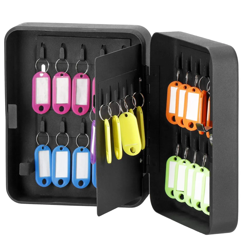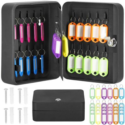 Uzamykateľná schránka na kľúče, ktorú ľahko zavesíte na stenu. Vyrobené z odolných materiálov, má silné steny. Predchystané otvory na zadnej strane umožňujú zavesenie na stenu. 30 háčikov na kľúče. Súčasťou tiež 30 príveskov na kľúče pre ľahšiu orientáciu. Bude sa hodiť v každej domácnosti, kancelárii, škole, vrátnici alebo šatni.