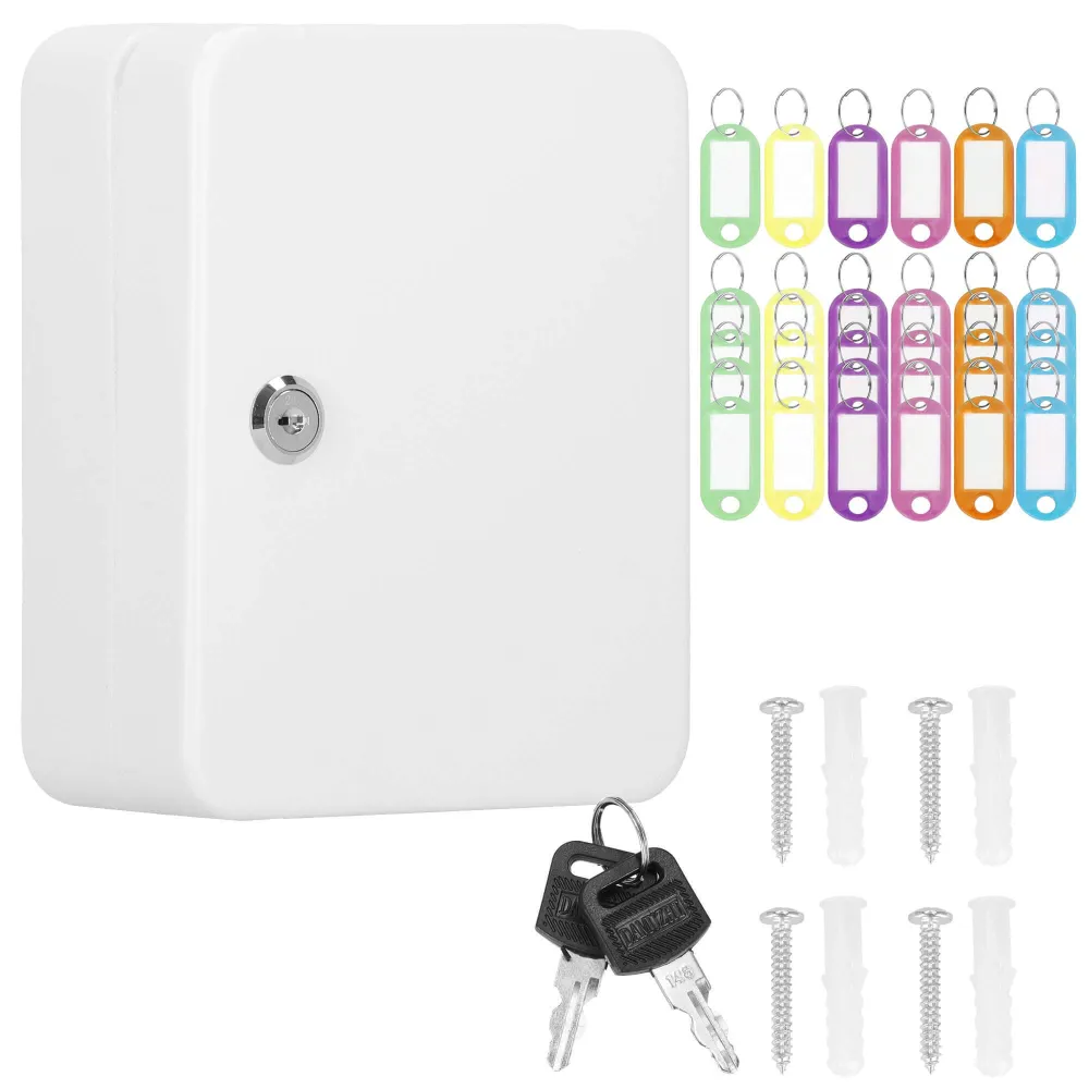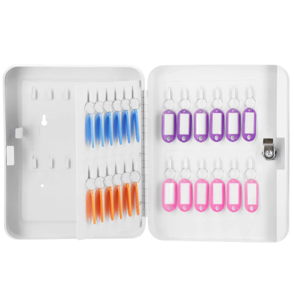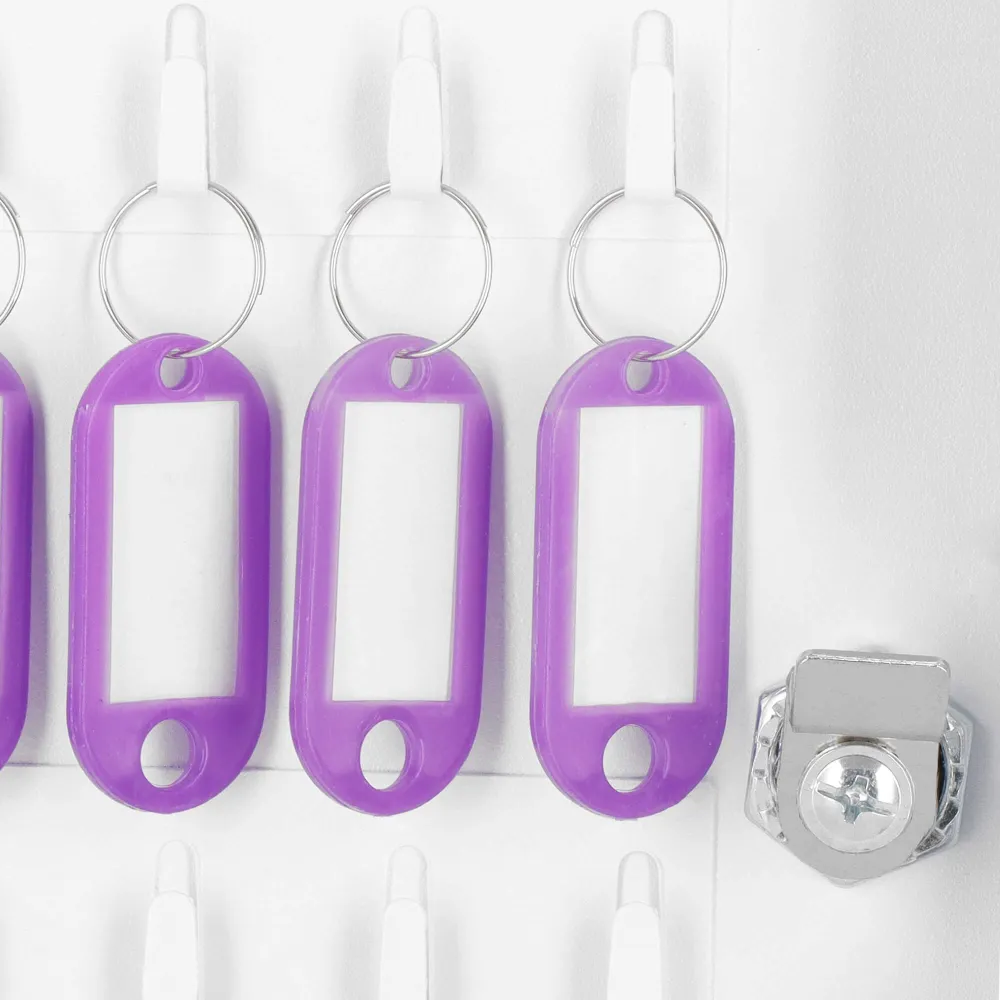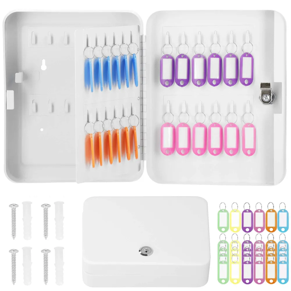 Uzamykateľná schránka na kľúče, ktorú ľahko zavesíte na stenu. Vyrobené z odolných materiálov, má silné steny. Predchystané otvory na zadnej strane umožňujú zavesenie na stenu. 48 háčikov na kľúče. Súčasťou tiež 48 príveskov na kľúče pre ľahšiu orientáciu. Bude sa hodiť v každej domácnosti, kancelárii, škole, vrátnici alebo šatni.
