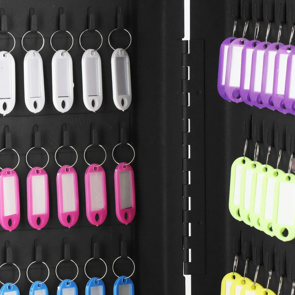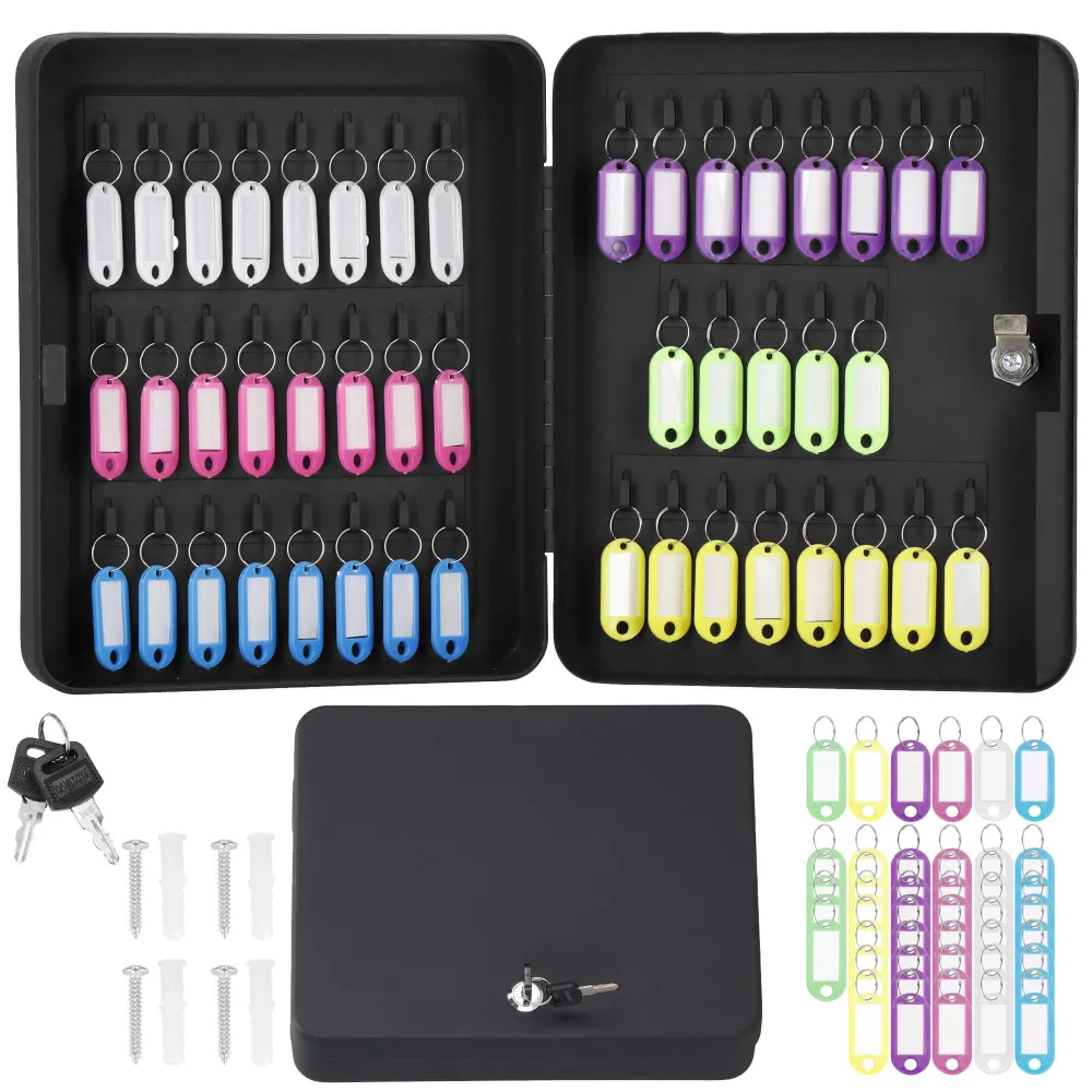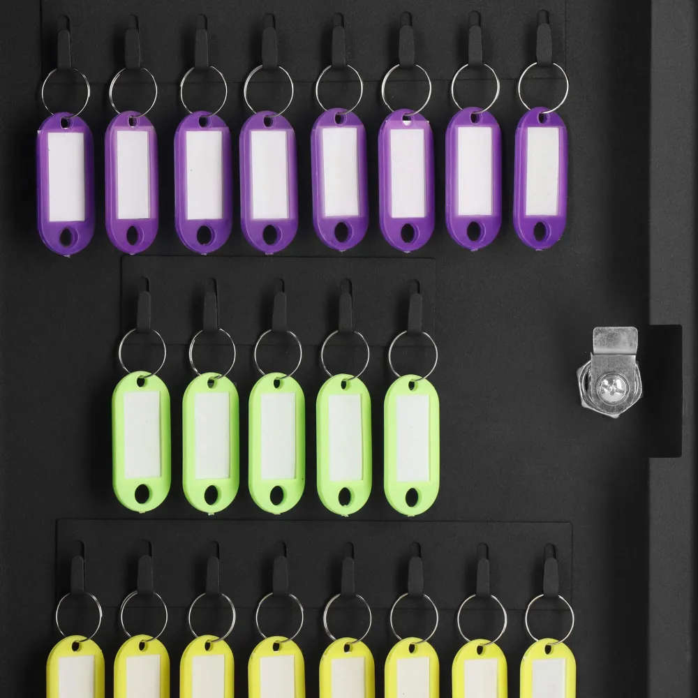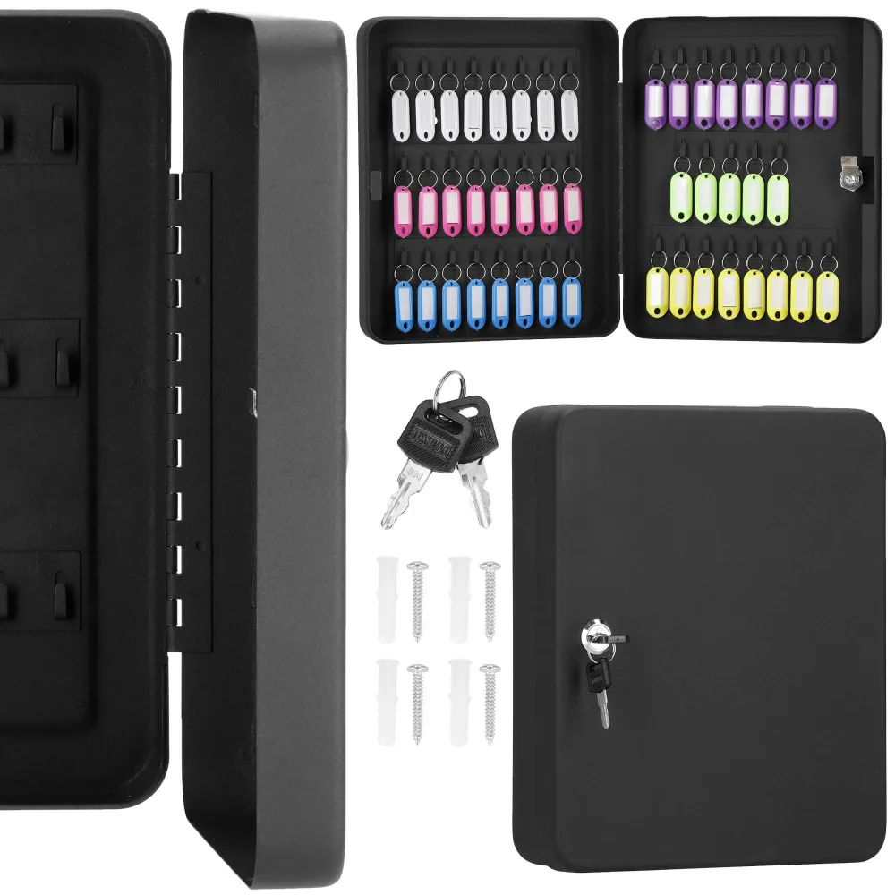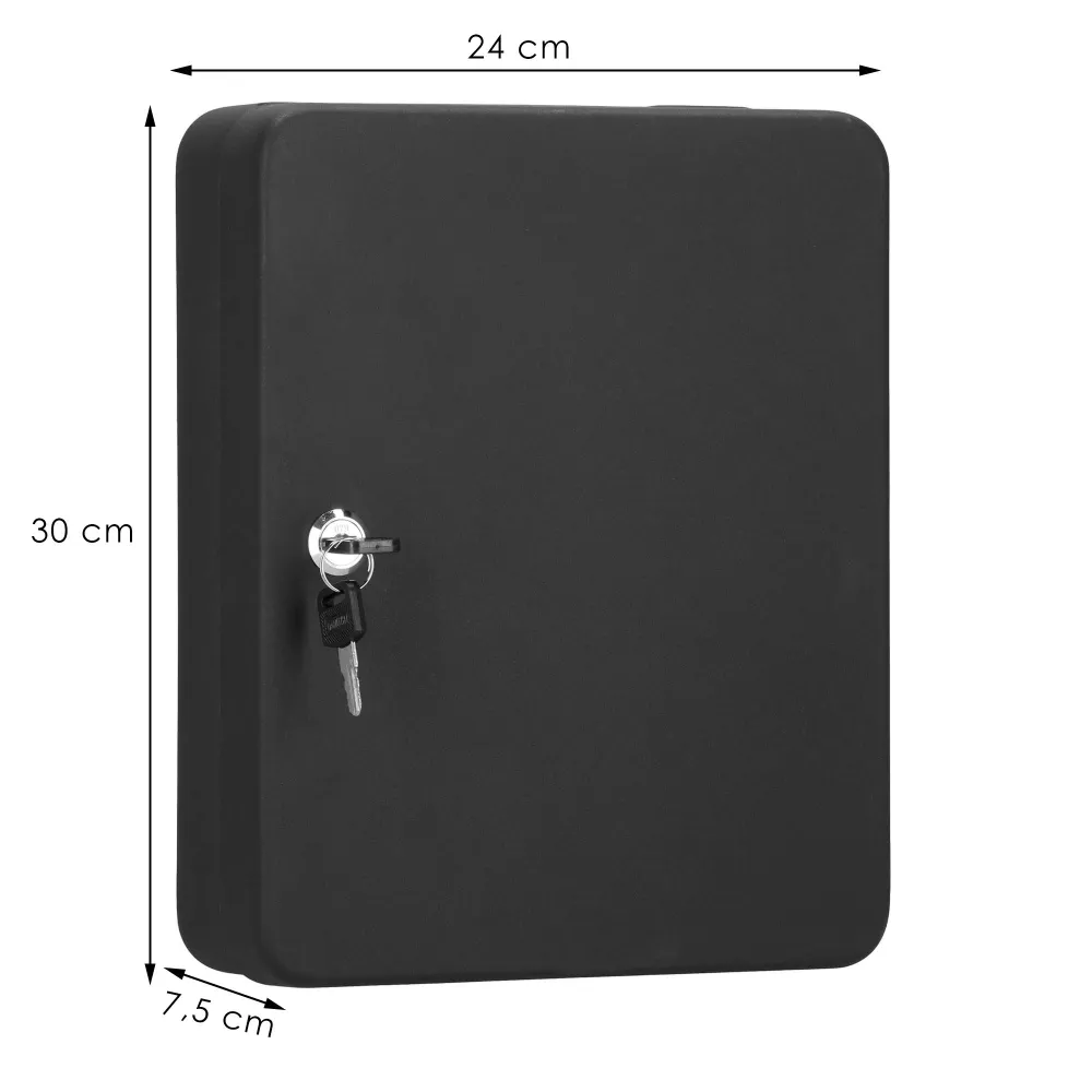 Uzamykateľná schránka na kľúče, ktorú ľahko zavesíte na stenu. Vyrobené z odolných materiálov, má silné steny. Predchystané otvory na zadnej strane umožňujú zavesenie na stenu. 45 háčikov na kľúče. Súčasťou tiež 45 príveskov na kľúče pre ľahšiu orientáciu. Bude sa hodiť v každej domácnosti, kancelárii, škole, vrátnici alebo šatni.
