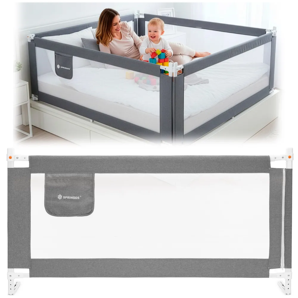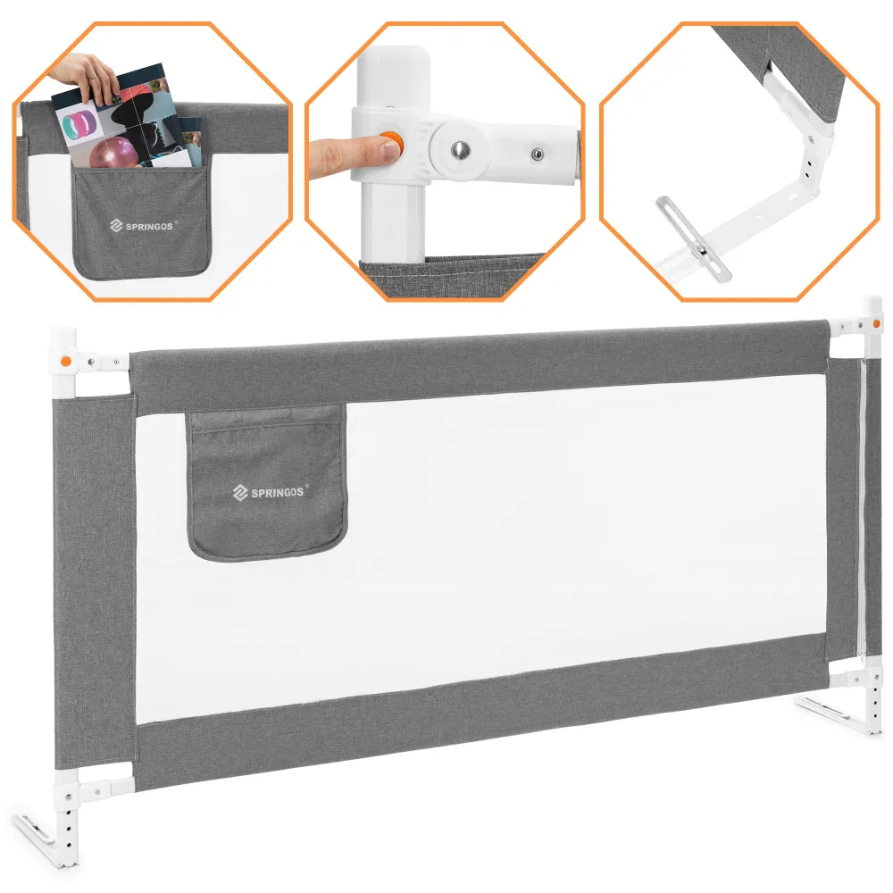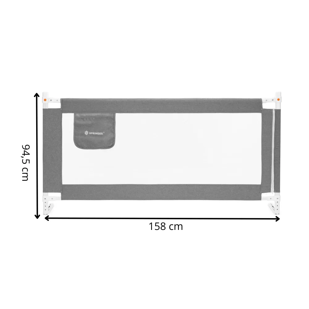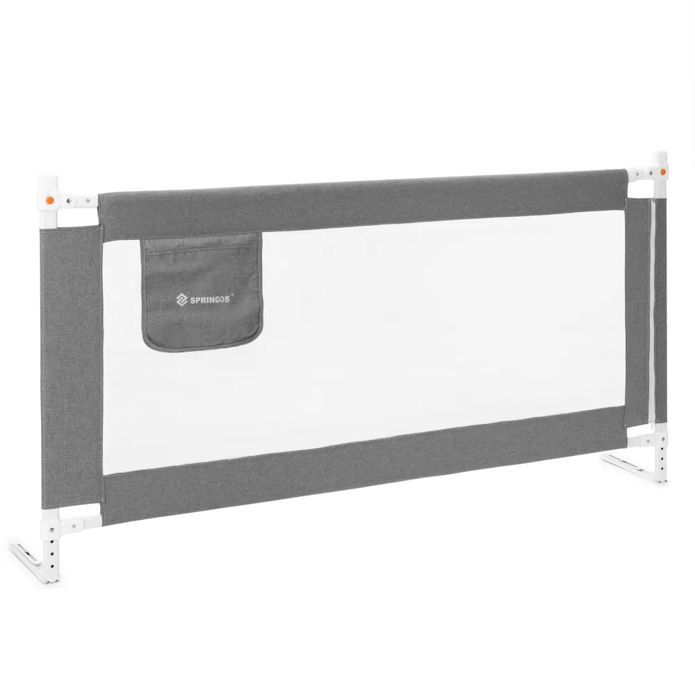 Zábrana na posteľ 160 cm SPRINGOS HA7527 šedá je ideálnym riešením pre rodičov, ktorí chcú zaistiť ochranu dieťaťa pred pádom z postele počas spánku aj odpočinku. Konštrukcia je tvorená pevným a stabilným rámom z nerezovej ocele , ktorý zaručuje spoľahlivosť a dlhú životnosť. Odolná nylonová sieťovina s dobrou viditeľnosťou umožňuje mať dieťa stále pod dohľadom a zároveň podporuje cirkuláciu vzduchu.