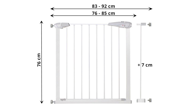 Kvalitná kovová bezpečnostná zábrana s rozširujúcim modulom, vhodná pre otvory s rozmermi 76 - 92 cm . Spoľahlivá ochrana častí domu pred nekontrolovateľným vstupom detí alebo zvierat. Jednoducho nastaviteľná s radom bezpečnostných prvkov zvyšujúcich stupeň ochrany. Certifikácia podľa EN 1930:2011.
