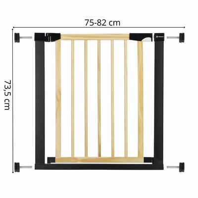Kvalitná detská zábrana vhodná pre otvory s rozmermi 75 – 82 cm. Štýlové prevedenie s kovovým rámom a drevenými dvierkami. Spoľahlivá ochrana častí domu pred nekontrolovateľným vstupom detí alebo zvierat. Zábrana na schody je jednoducho nastaviteľná s radom bezpečnostných prvkov zvyšujúcich stupeň ochrany. Certifikácia podľa ASTMF1004-13 / EN 1930:2011.