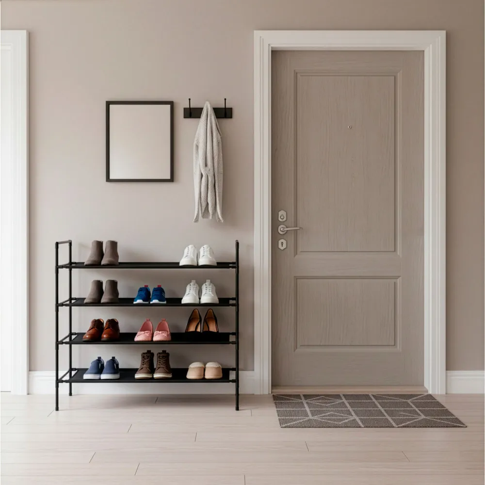 Kovový botník 4 police SPRINGOS HA7549 čierny je praktickým riešením pre prehľadné uloženie obuvi v predsieni, chodbe alebo šatni. Vďaka štyrom policam ponúka dostatok priestoru pre každodenné aj sezónne topánky a pomáha udržať poriadok aj v domácnostiach s obmedzeným miestom. Kompaktné rozmery umožňujú ľahké umiestnenie bez zbytočného zaberania priestoru.