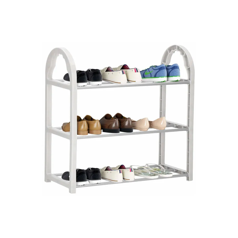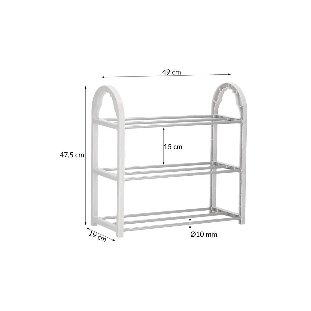 Praktický stojan na topánky v bielej farbe s 3 policami na uloženie až 9 párov topánok. Umožní vhodne zariadiť vašu obývaciu izbu alebo predsieň. Stabilná konštrukcia, dlhá životnosť. 15 cm široká rozostup medzi policami vám umožní umiestniť na ne nízke topánky a dokonca aj vysoké zimné topánky. Ľahká konštrukcia, rýchla montáž, ľahká zmena polohy Rozmery 49x19x47,5 cm (ŠxHxV)