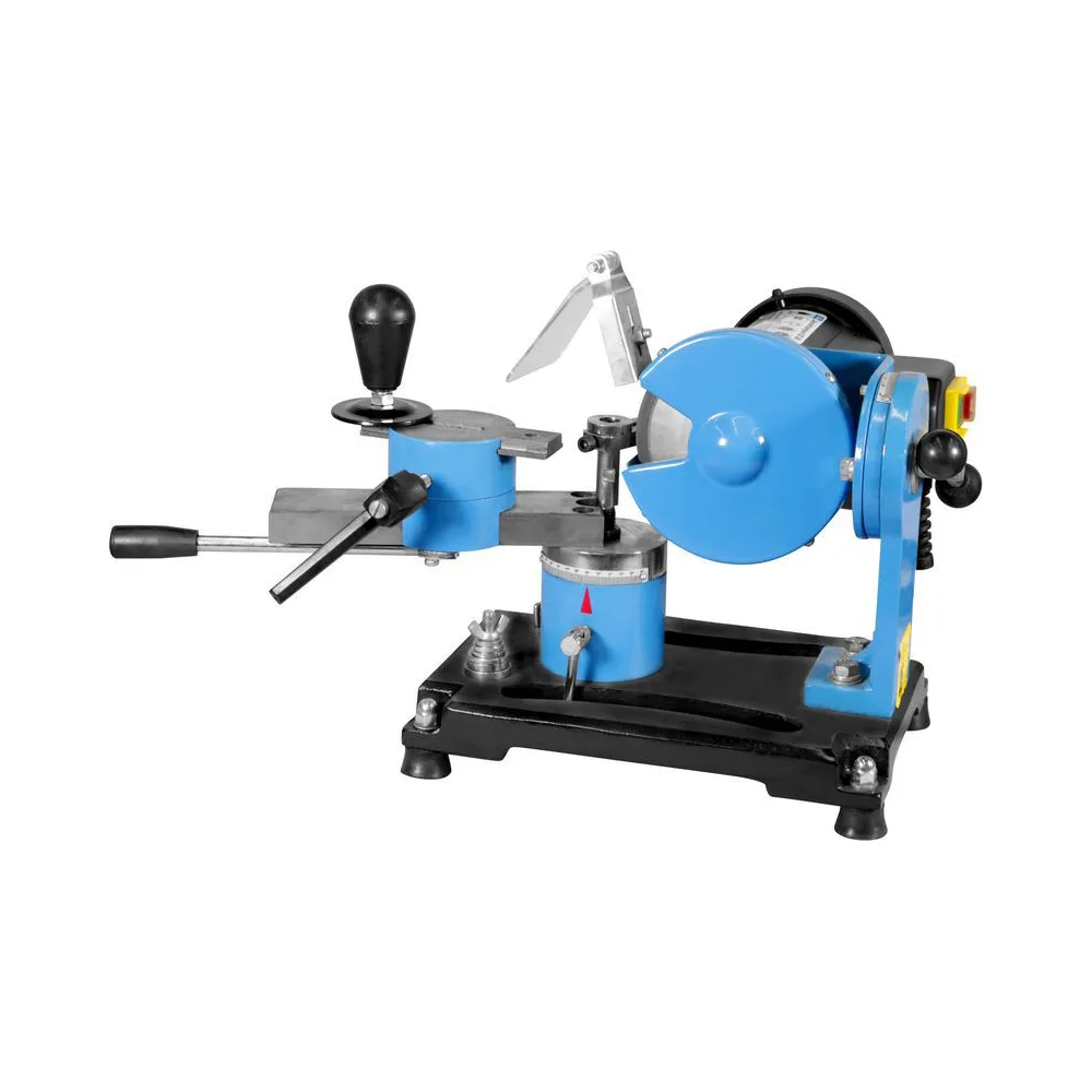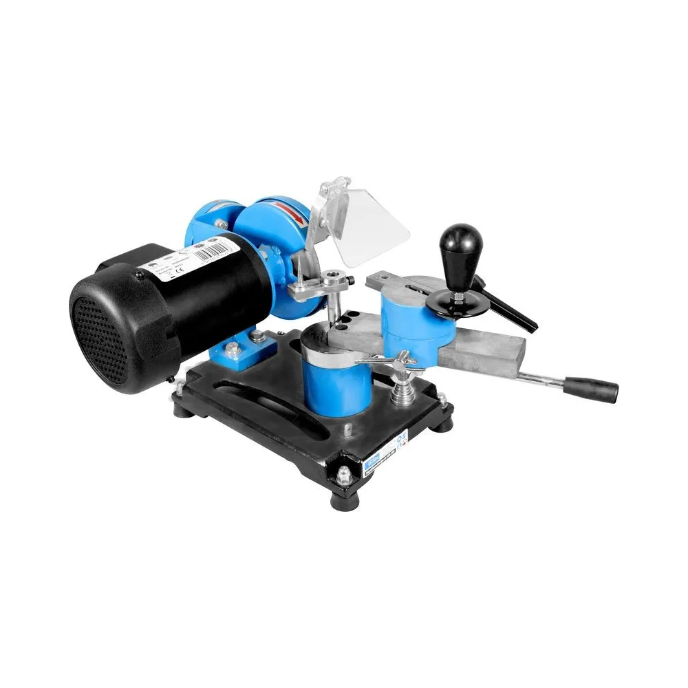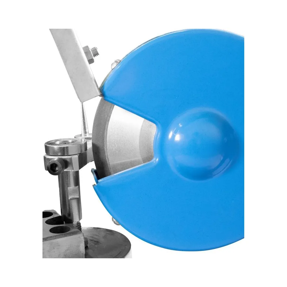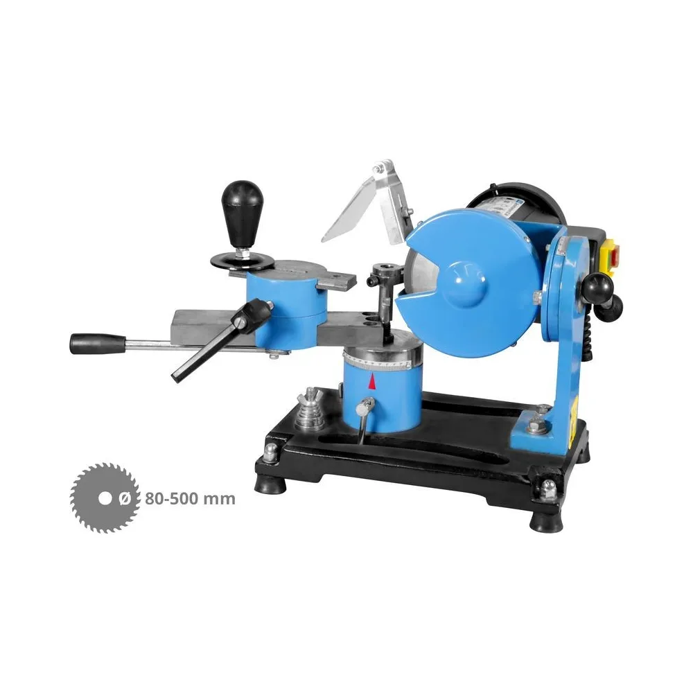 Brúska pílových kotúčov, určená na presné brúsenie/ostrenie všetkých bežne používaných typov kotúčov s vonkajším priemerom 80 - 500 mm (najmä ručných okružných/stolových kotúčových/kolískových píl a podobne) v podmienkach dielní a špecializovaných prevádzok (metóda suchého). Brúsenie čela/chrbta pílových zubov vďaka kombinácii otočného upínacieho stola (30° vľavo - 80° vpravo v horizontálnej rovine)/polohovateľné brúsne hlavy (s nastaviteľným bočným vyklápaním +/- 30°), niekoľko otvorov pre fixáciu pílových kotúčov rôznych vonkajších priemer oporný kotúče pri ostrení. Motor 150 W, korpus ostričky z ocele, bočný kryt kotúča/priehľadná clona ako garancia bezpečnej práce s brúskou, vypínač v ochrannom puzdre, brúsny kotúč 125 x 30 x 10 mm, adaptéry pre rôzne vnútorné Ø kotúčov (7), základová časť s otvormi.