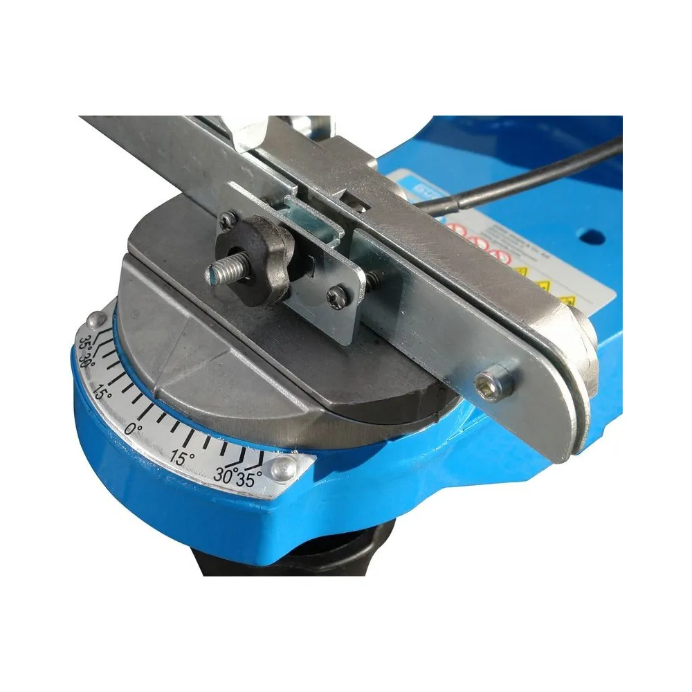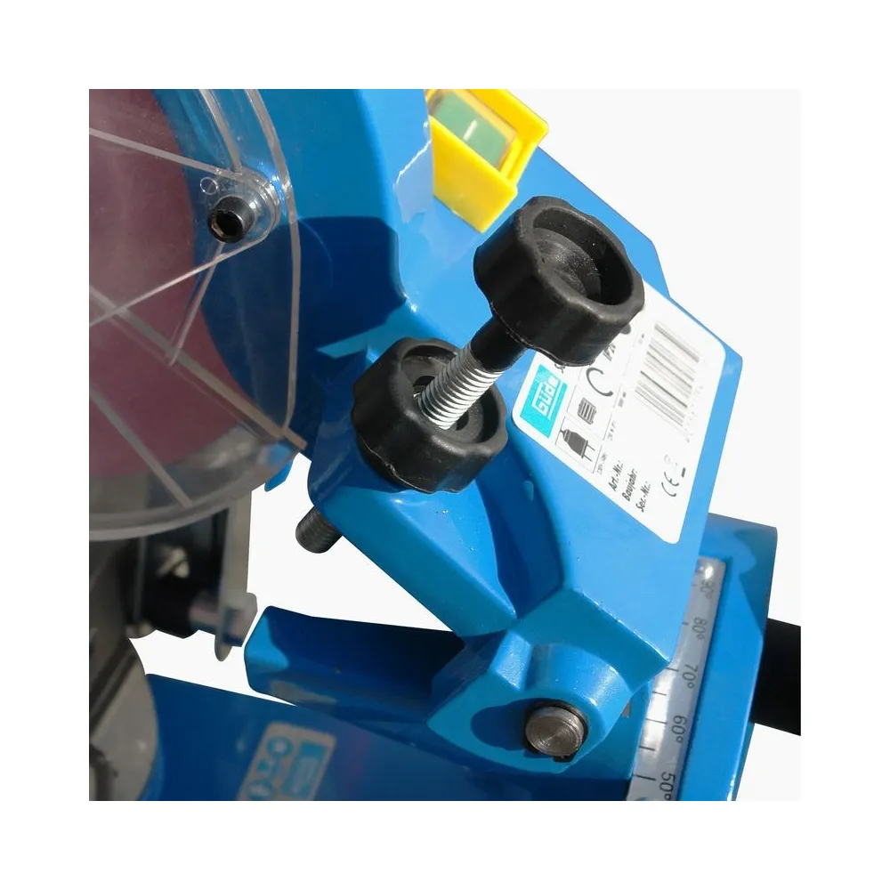 Brúska na brúsenie všetkých bežných typov pílových reťazí. Uhol ostrenia 2 x 35°, nastaviteľný pomocou ručného kolieska. W/E14).