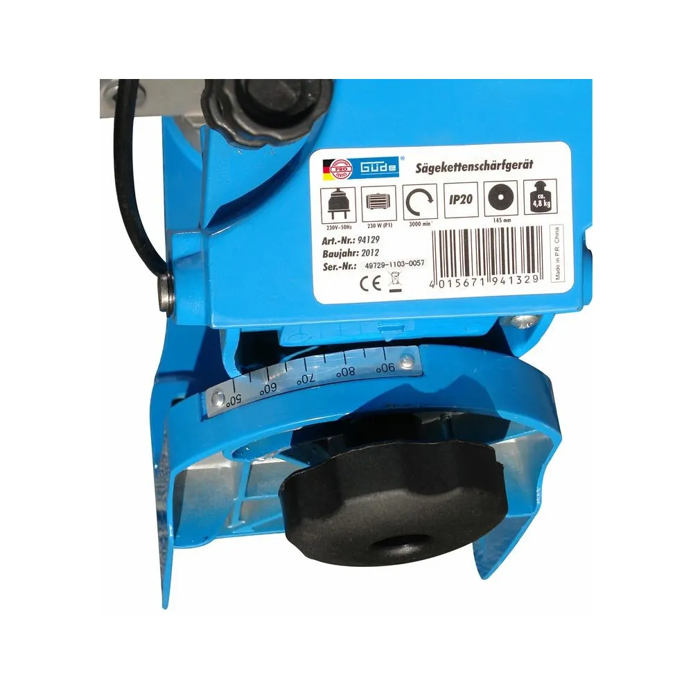 Brúska na brúsenie všetkých bežných typov pílových reťazí. Uhol ostrenia 2 x 35 °, nastaviteľný pomocou ručného kolieska. Vodiaca lišta reťaze s variabilne nastaviteľným dorazom, rýchle napnutie reťaze. Pre stacionárnu montáž, nábehový uhol ostria 50 ° - 90 °, nastaviteľný pomocou ručného kolieska.