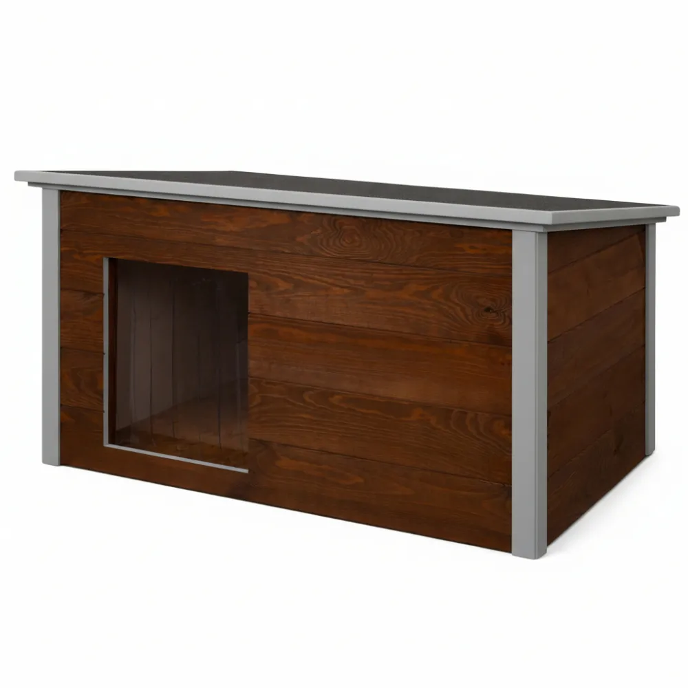 Zatepletá búda pre psa 106x72x67 cm DECHLAND BP06 hnedo-šedá je ideálnym riešením pre majiteľov, ktorí chcú svojmu psovi zaistiť pohodlie po celý rok. Vďaka sendvičovému zatepleniu poskytuje ochranu pred chladom, vetrom aj horúčavou. Drevená konštrukcia je pevná a odolná, vhodná na dlhodobé vonkajšie použitie .