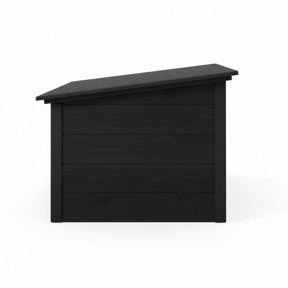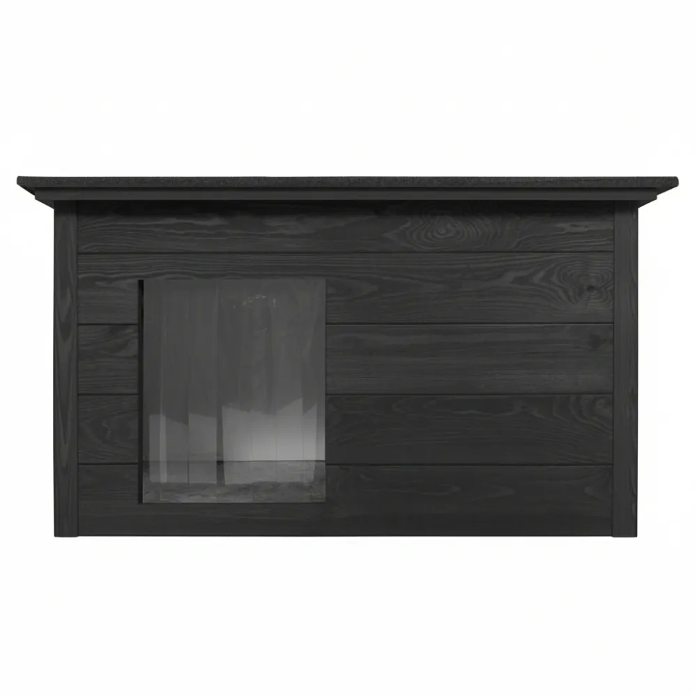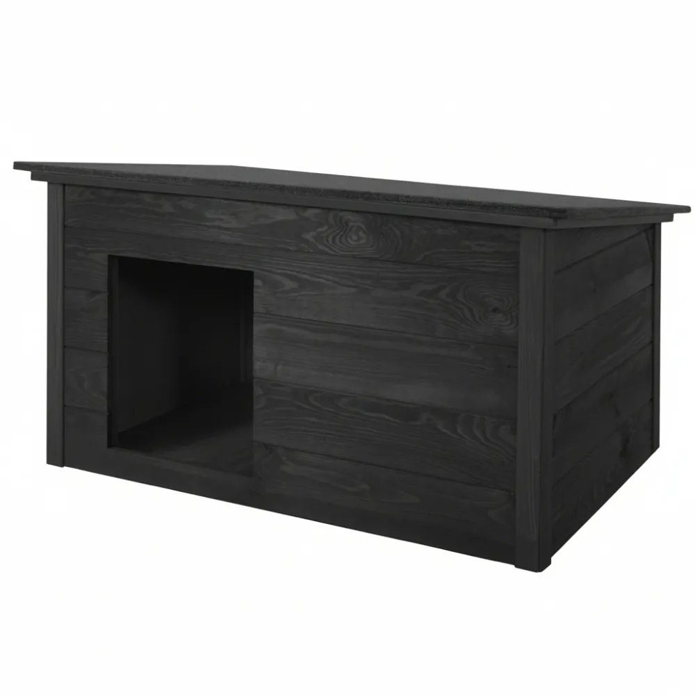 XL psie búda určená pre celoročné vonkajšie použitie. Drevená búda so sendvičovým zateplením zaisťuje tepelný komfort v každom počasí. Lamelový vchod obmedzuje prienik chladu a vetra. Šikmá vodeodolná strecha chráni pred dažďom aj snehom. Vyvýšená izolovaná podlaha zabraňuje vlhkosti od zeme a udržuje vnútorný priestor suchý a teplý. Celkové rozmery 106x72x67 cm, rozmery vstupu 36x41 cm.