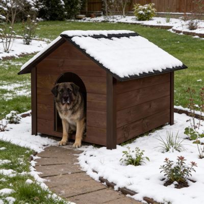 Zateplená búda pre psa XL 72x116x81 cm DECHLAND BP04 hnedá je navrhnutá špeciálne pre väčšie plemená, ktoré potrebujú dostatok priestoru a pohodlia. Priestranné vnútro umožňuje psovi voľný pohyb aj pohodlný odpočinok. Vyvýšená podlaha chráni pred vlhkosťou, chladom a studenou zemou, takže je ideálna na celoročné vonkajšie použitie.