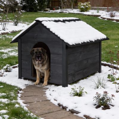 Zateplená búda pre psa XL 72x116x81 cm DECHLAND BP04 tmavo šedá je navrhnutá špeciálne pre väčšie plemená, ktoré potrebujú dostatok priestoru a pohodlia. Priestranné vnútro umožňuje psovi voľný pohyb aj pohodlný odpočinok. Vyvýšená podlaha chráni pred vlhkosťou, chladom a studenou zemou, takže je ideálna na celoročné vonkajšie použitie.