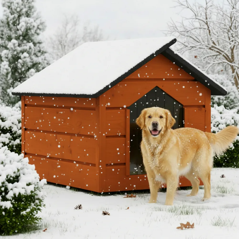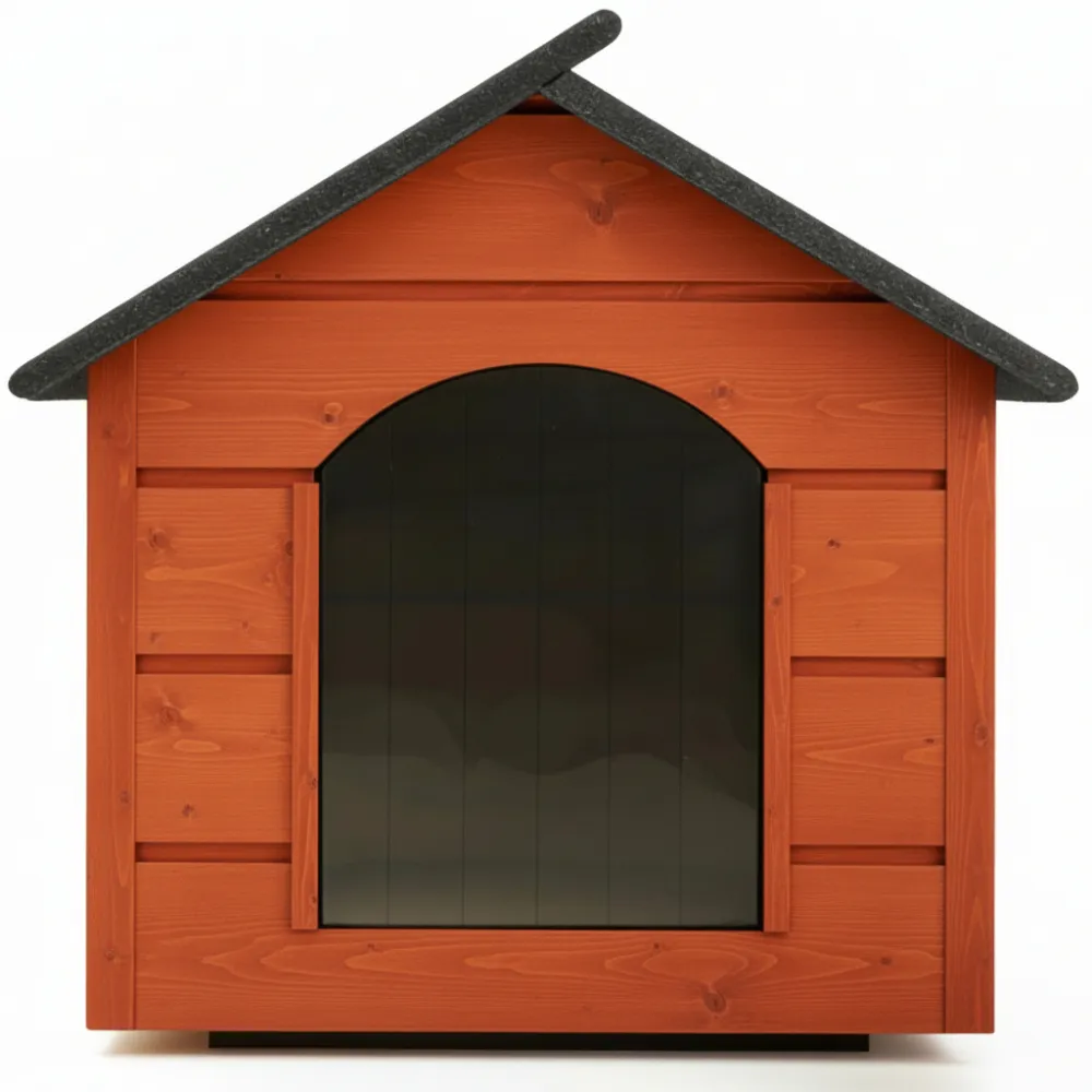 Súčasťou konštrukcie je lamelový vchod , ktorý obmedzuje prienik studeného vzduchu a zároveň umožňuje psovi pohodlný vstup. Sedlová vodeodolná strecha zaisťuje odtok vody a chráni interiér pred dažďom aj snehom. Veľkou výhodou je tiež vyvýšená izolovaná podlaha , ktorá zabraňuje prenikaniu vlhkosti od zeme.