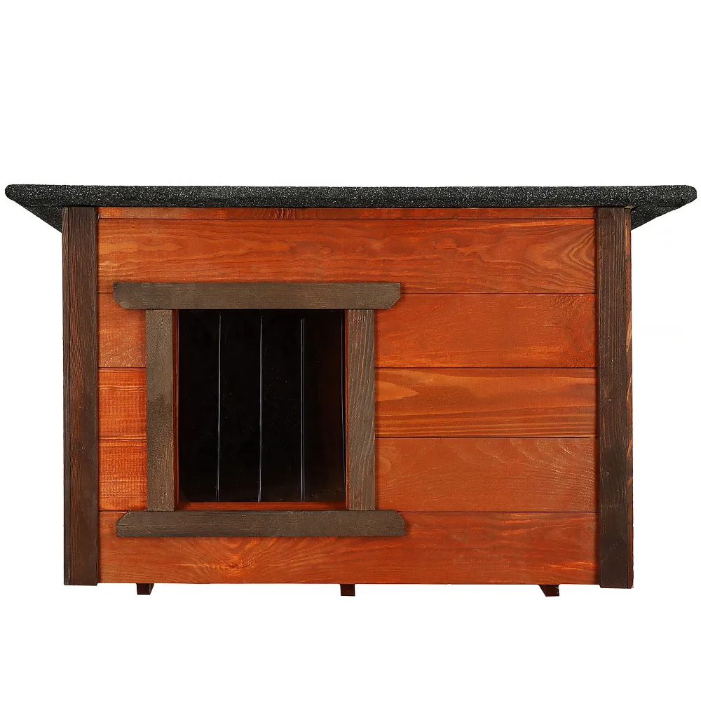 Psie búda pre stredné plemená psov s dostatkom priestoru a pevnou konštrukciou. Vyvýšená podlaha chráni pred chladom a vlhkosťou. Sendvičové zateplenie zaisťuje teplo v zime a príjemnú klímu v lete. Lamelový vchod obmedzuje prievan. Šikmá vodeodolná strecha spoľahlivo chráni pred dažďom aj snehom.