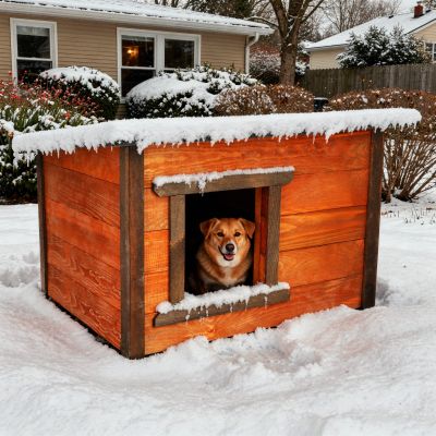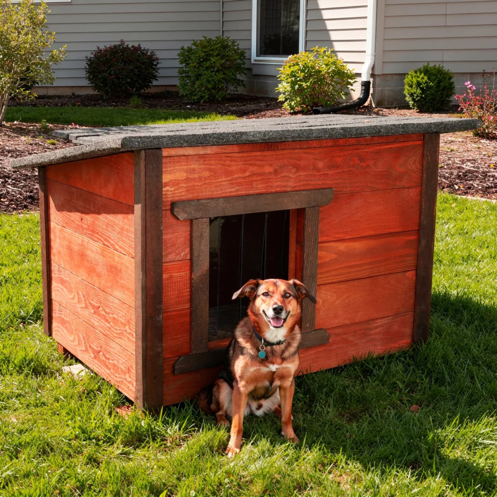 Vďaka sendvičovému zatepleniu je vo vnútri stabilná teplota – v zime hreje, v lete bráni prehrievaniu. Lamelový vchod obmedzuje prievan a zvyšuje tepelný komfort psa. Vnútorné prostredie je pokojné, chránené a vhodné na celoročné vonkajšie používanie.