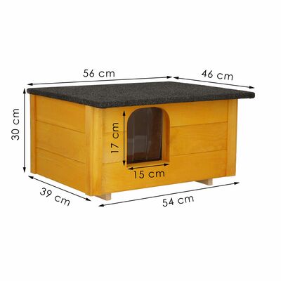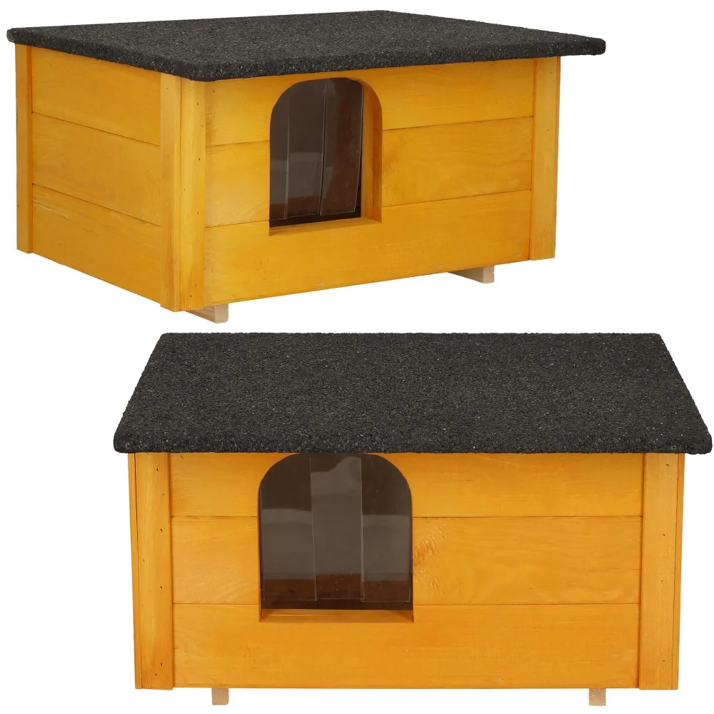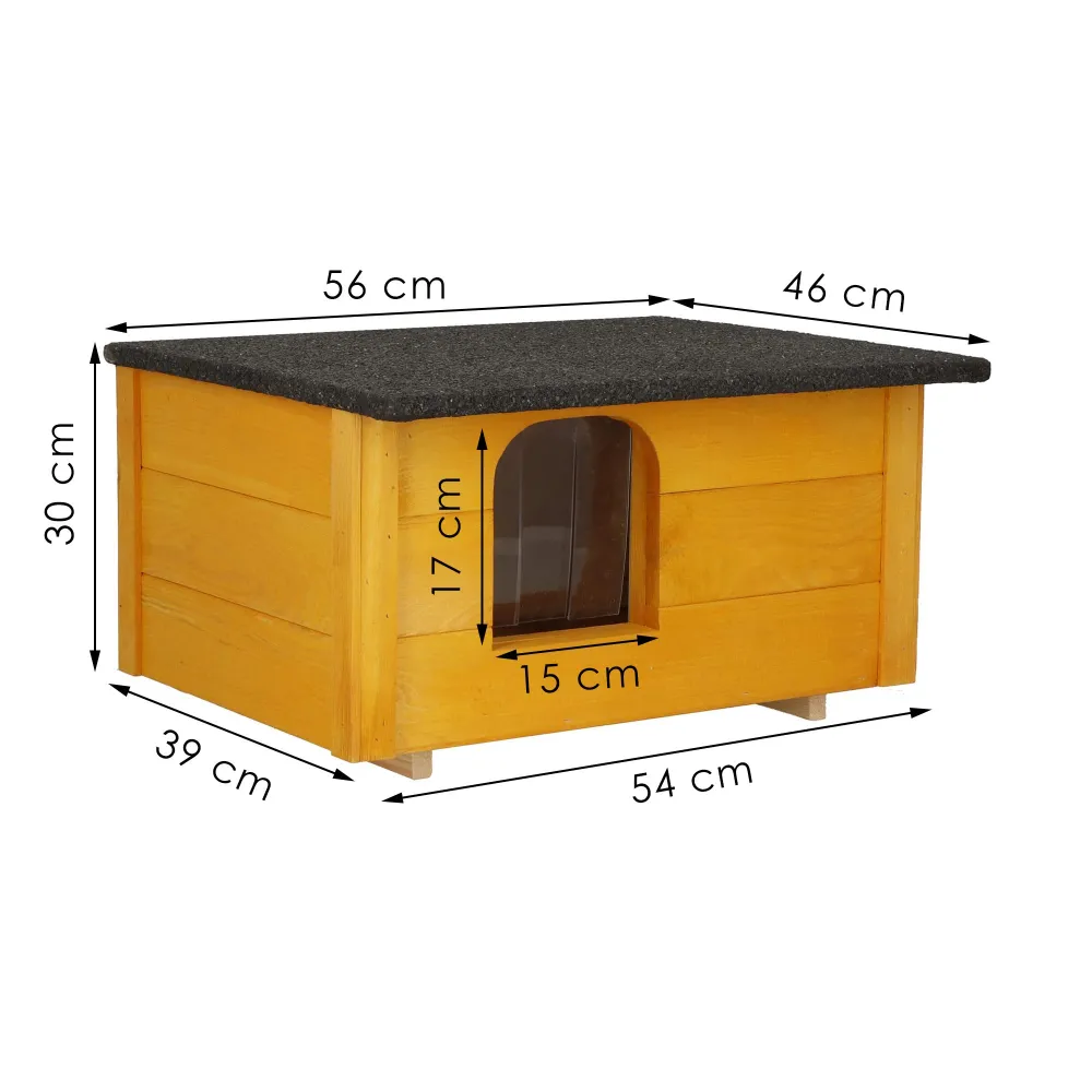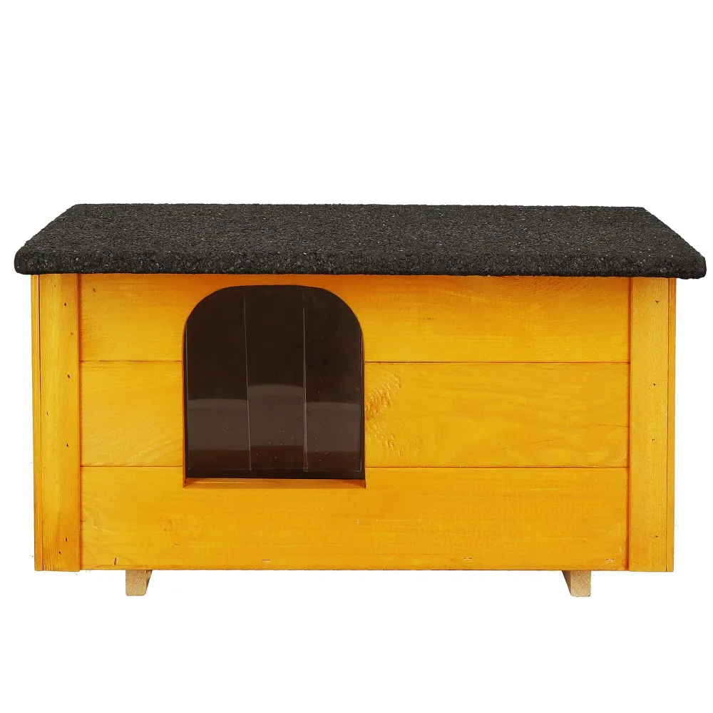 Psie búda pre malé plemená psov s kompaktnými rozmermi a pevnou konštrukciou. Vyvýšená podlaha chráni pred chladom a vlhkosťou. Sendvičové zateplenie zaisťuje teplo v zime aj komfort v lete. Lamelový vchod obmedzuje prievan. Šikmá vodeodolná strecha chráni pred dažďom a snehom. Otváracia strecha uľahčuje čistenie aj kontrolu psa. Rozmery 54x39x30 cm, vstup 17x15 cm.