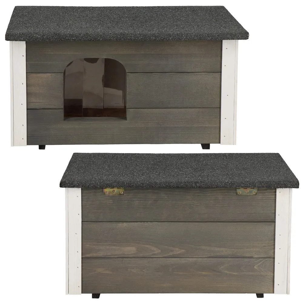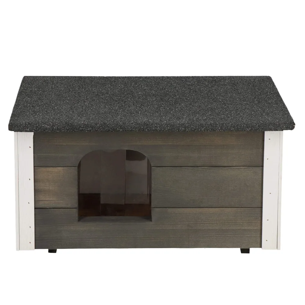 Psie búda pre malé plemená psov s kompaktnými rozmermi a pevnou konštrukciou. Vyvýšená podlaha chráni pred chladom a vlhkosťou. Sendvičové zateplenie zaisťuje teplo v zime aj komfort v lete. Lamelový vchod obmedzuje prievan. Šikmá vodeodolná strecha chráni pred dažďom a snehom. Otváracia strecha uľahčuje čistenie aj kontrolu psa. Rozmery 54x39x30 cm, vstup 17x15 cm.