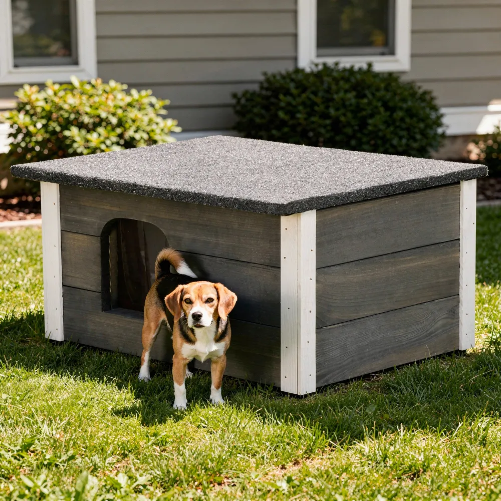 Konštrukcia zahŕňa šikmú vodeodolnú strechu , ktorá spoľahlivo odvádza dážď aj sneh. Veľkou výhodou je tiež otváracia strecha , vďaka ktorej je možné búdu ľahko vyčistiť alebo skontrolovať stav psa. Pevné materiály zaisťujú dlhú životnosť a stabilitu, takže búda obstojí aj pri dlhodobom vonkajšom používaní.
