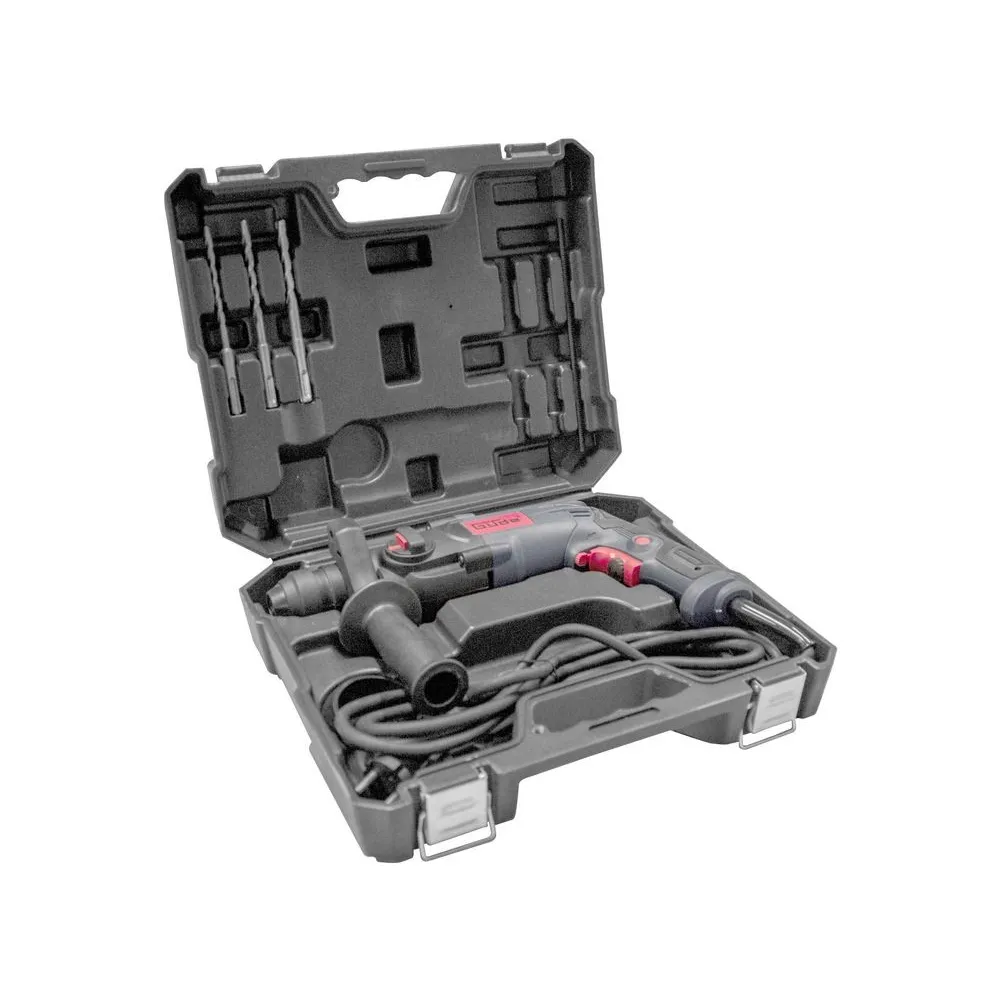 Mäkká rukoväť na ergonomickú a bezpečnú prácu. Ergonomicky tvarovaná, odnímateľná prídavná rukoväť (prispôsobená pre pravákov a ľavákov) pre zvýšenú bezpečnosť práce. Odnímateľný a nastaviteľný hĺbkový vŕtací doraz s rýchloupínaním. Rýchloupínacie skľučovadlo SDS plus na výmenu vrtákov bez náradia. Plynulá regulácia otáčok s plynulým rozbehom. Uzamykateľný spínač pre nepretržitú prevádzku. Prírazový doraz na vŕtanie bez príklepu. Vrátane 3 ks vrtákov SDS-plus (Ø 6/8/10 mm), hĺbkového dorazu vŕtania, prídavnej rukoväte, krytu proti prachu. Vysoko kvalitný prepravný kufor s kovovými prackami.