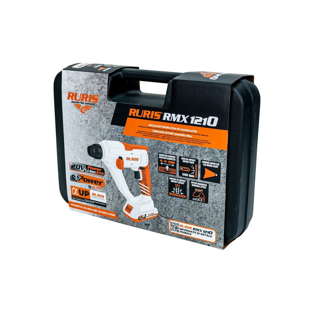 Akumulátorové vŕtacie kladivo RURIS RMX1210 je výkonné a spoľahlivé ručné náradie, ideálne pre užívateľov, ktorí hľadajú efektivitu a výkon pri vŕtacích a demolačných prácach. Ľahký robustný dizajn, ktorý umožňuje ľahkú manipuláciu.