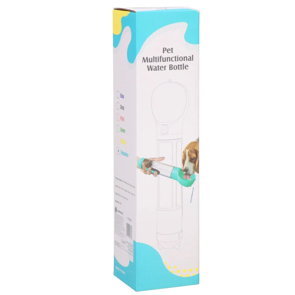Multifunkčná cestovná fľaša pre psov 4v1 v sebe kombinuje misku na vodu, zásobník na jedlo, vrecká a lopatku na exkrementy - všetko na jednom mieste. Fľaša má nepriepustný ventil a umožňuje presné dávkovanie vody pomocou stlačenia tlačidla. Vďaka premyslenému designu sa nespotrebovaná voda vracia späť do nádoby. Šnúrka na zavesenie a zdravotne nezávadný materiál zaisťujú pohodlné a bezpečné používanie. Objem 500 ml.