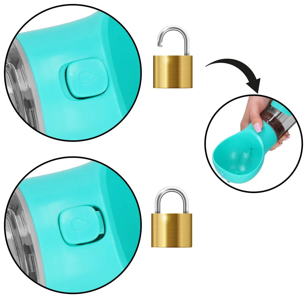 Funkcia dávkovania vody je veľmi pohodlná, pretože vďaka nepriepustnému ventilu a presnému dávkovaniu pomocou stlačenia tlačidla môžete psovi vždy ponúknuť správne množstvo vody bez toho, aby došlo k plytvaniu. Ďalšou skvelou funkciou je premyslený dizajn , ktorý umožňuje vrátiť nespotrebovanú vodu späť do fľaše otočením nádoby, čo oceníte najmä na dlhších cestách, kde je obmedzený prístup k čerstvej vode.