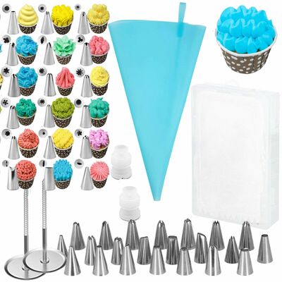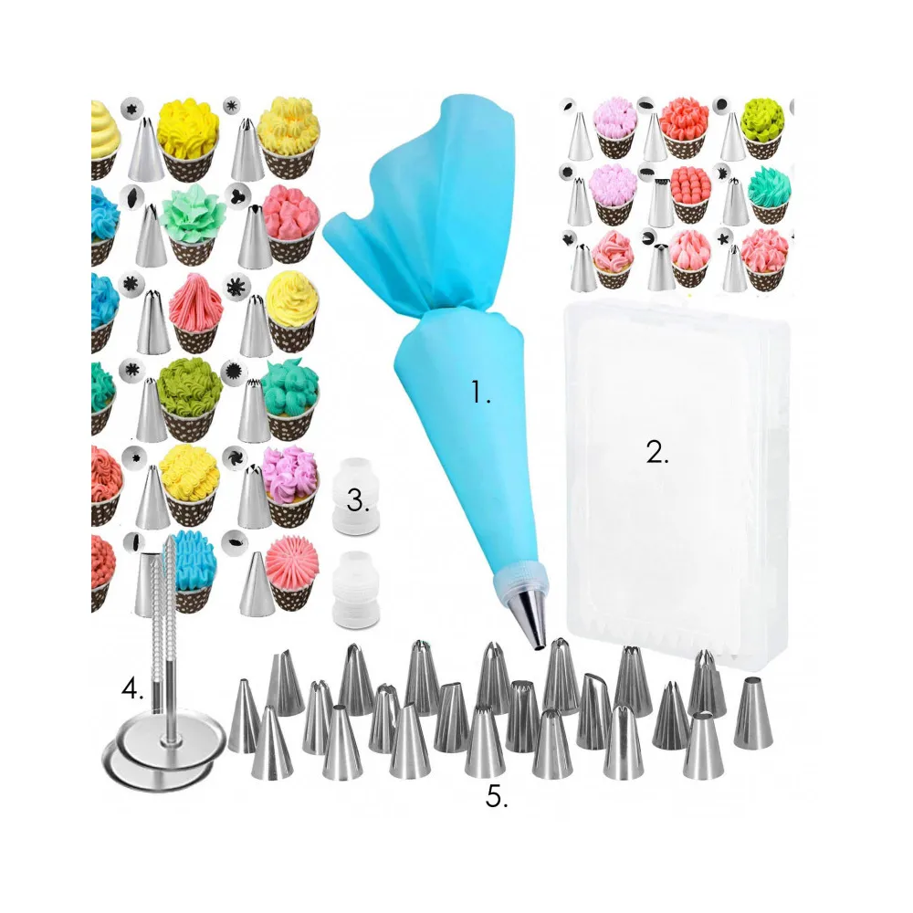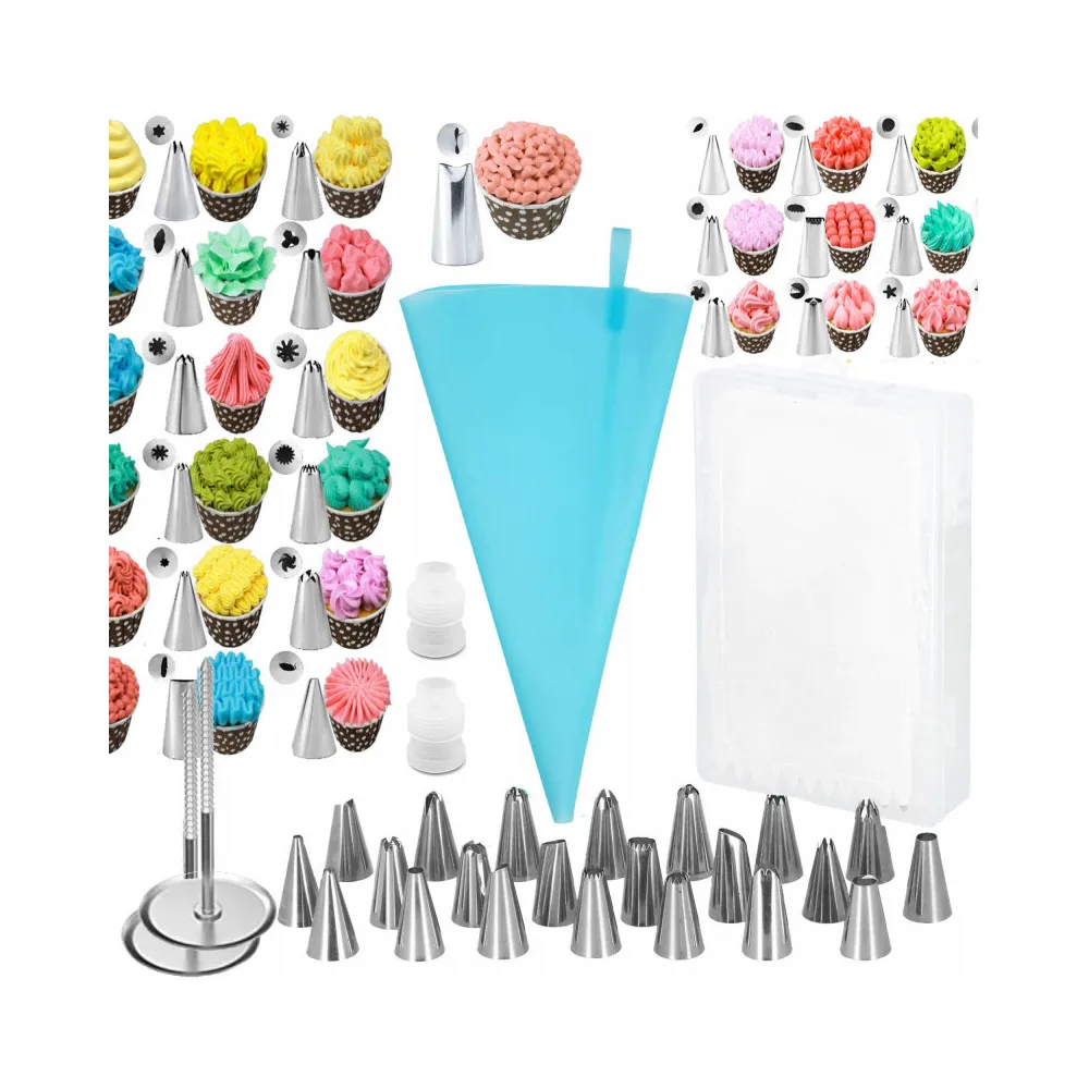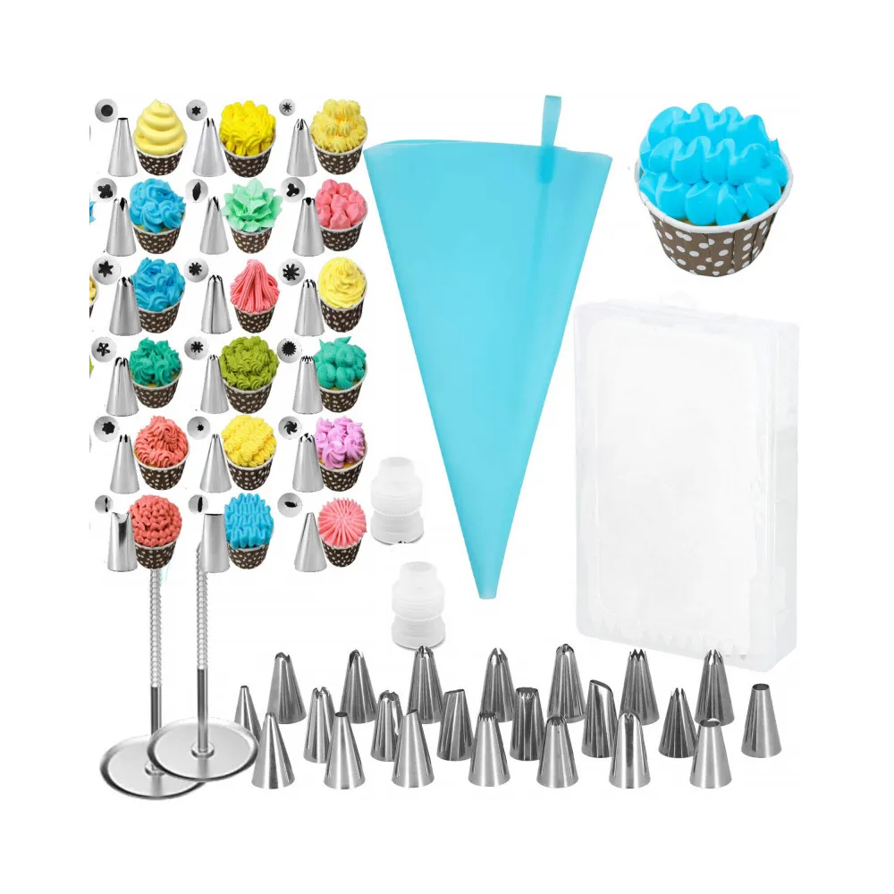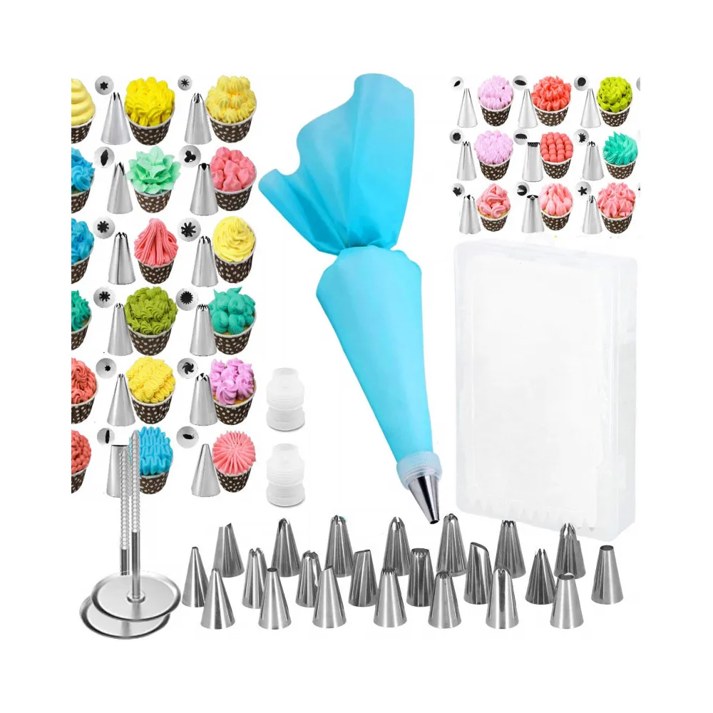 Sada zdobiacich cukrárskych pomôcok. Súprava obsahuje 38 prvkov. Silikónový dekoratér, hroty z nerezovej ocele. Certifikované a odolné materiály. Ergonomický tvar rukávov. Perfektný na zdobenie a vytváranie dezertov.