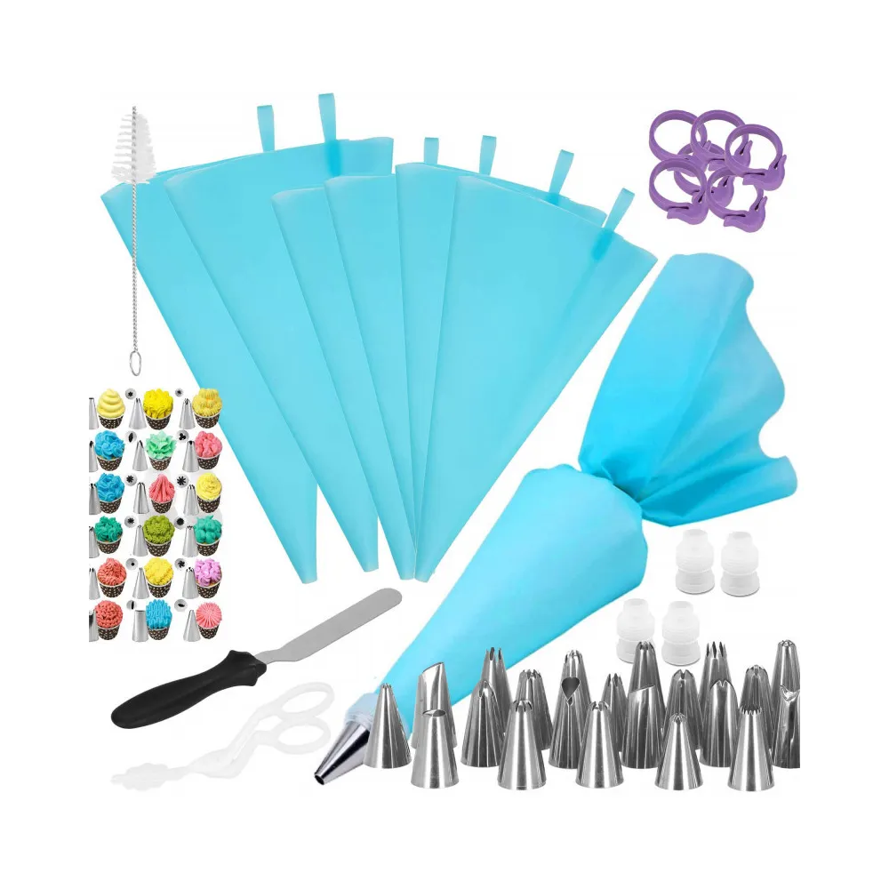 Súprava zdobiacich cukrárskych pomôcok . Obsahuje 70 prvkov. Špachtle a hroty z nerezovej ocele. Certifikované a odolné materiály. Ergonomický tvar rukávov. Perfektný na zdobenie a vytváranie dezertov.