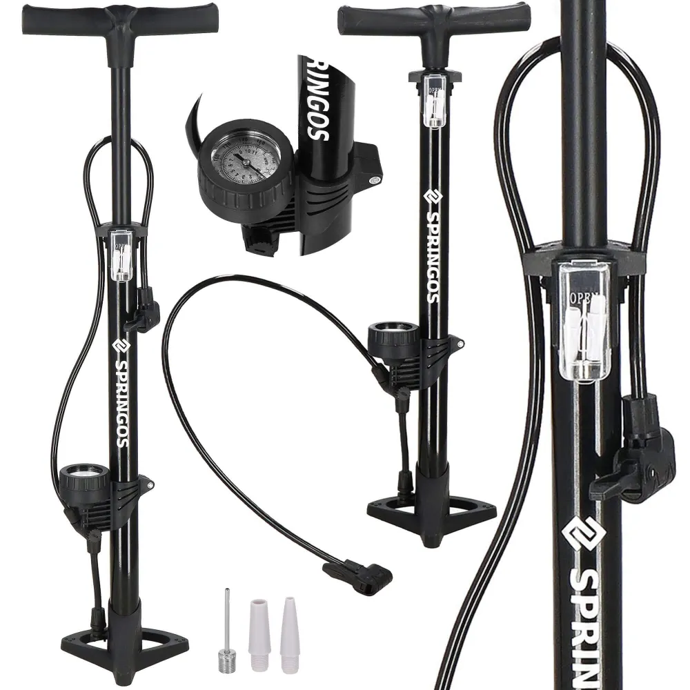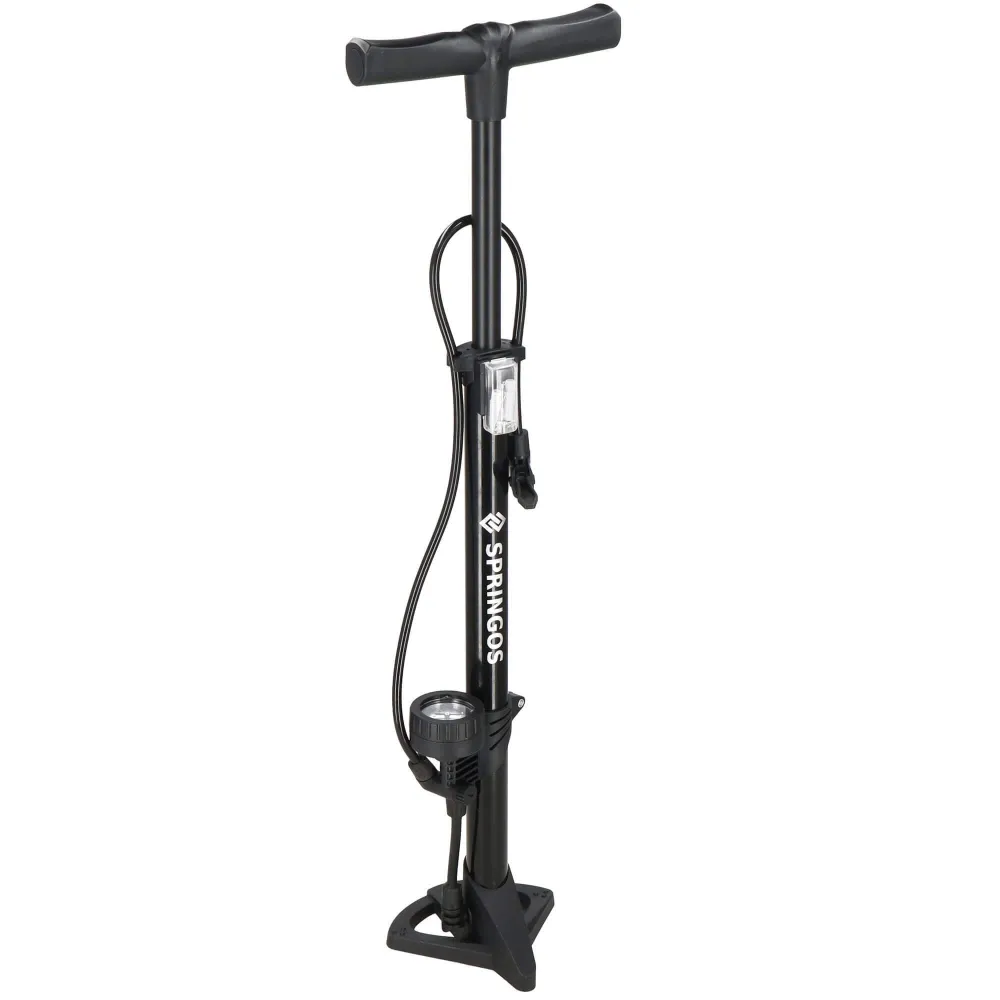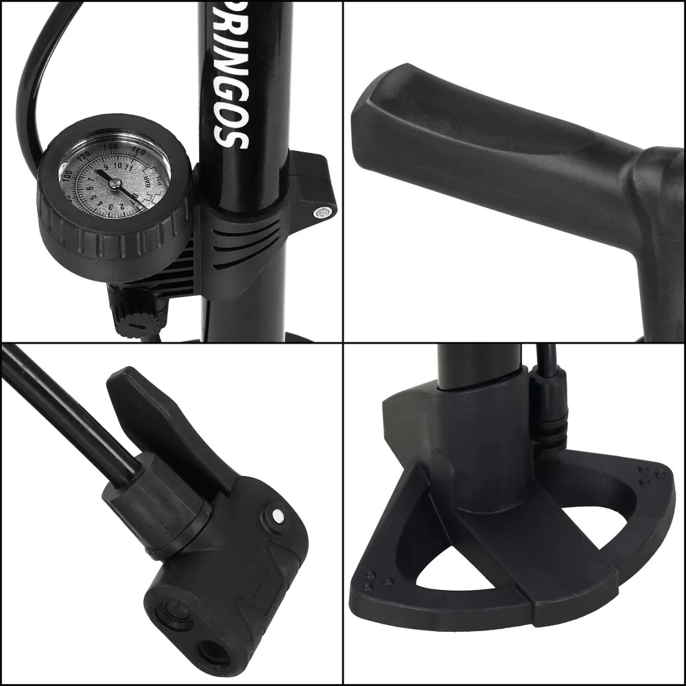 Stacionárna podlahová pumpa SPRINGOS BA0045 je prvotriedny výrobok s veľkým množstvom výhod . Stabilná základňa, dlhá a ohybná vzduchová hadica, sada adaptérov. Pumpička je vybavená veľkým a dobre čitateľným manometrom . Maximálny tlak je 11 barov . Tlakomer umožňuje získavať informácie o aktuálnom tlaku, nikdy sa vám teda nestane, že podhustíte alebo prehustíte.