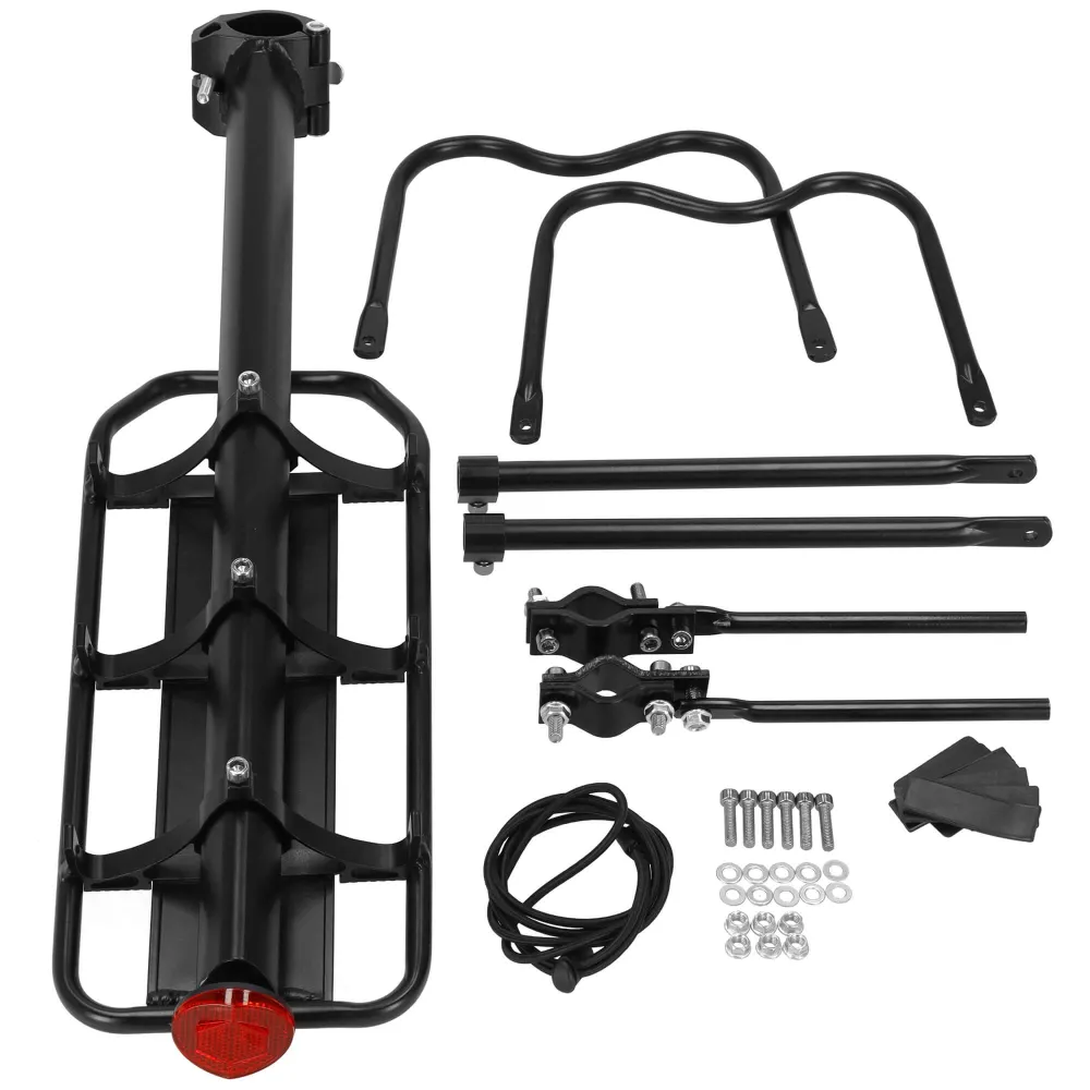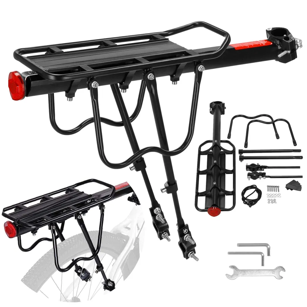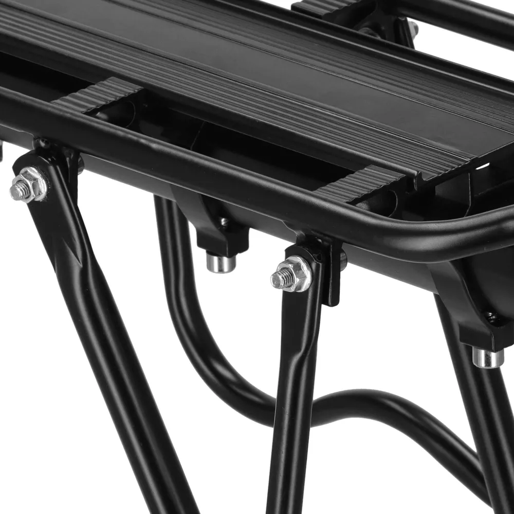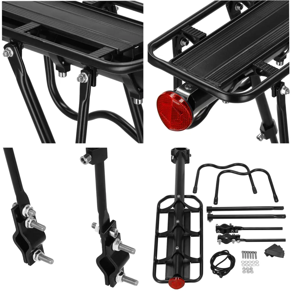 Univerzálny nosič na bicykel na prevoz cestovnej batožiny. Veľmi ľahký, napriek tomu pevný hliníkový materiál. Maximálna nosnosť 50 kg. Jednoduchá a rýchla montáž, reflexné prvky pre väčšiu bezpečnosť prevádzky. Konštrukcia uchytenia pasuje na väčšinu kolies, nosič výrazne zlepšuje stabilitu bicykla. Integrované bočné madlá na uchytenie tašky. Praktický doplnok pre každého cyklistu.