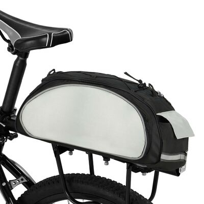 Pokiaľ máte radi dlhšie prechádzky na bicykli, cyklistická taška je pre vás ako stvorená. Je uchytená na zadnú časť kolesa a tak vám umožní vziať si so sebou všetky dôležité veci . Vrecká a hlavné komory sa zapínajú na zips a zaručujú tak rýchly prístup a bezpečnosť uloženého obsahu. Taška je vybavená priestrannou hlavnou komorou , dvoma menšími bočnými vreckami a jedným vreckom na suchý zips. V hornej časti tašky sú umiestnené elastické popruhy so zarážkami , pod ktoré je možné umiestniť ďalšie príslušenstvo.