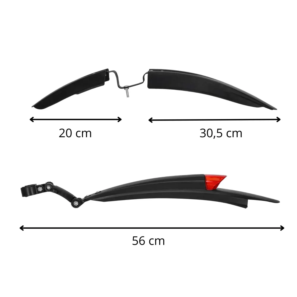 Univerzálna sada blatníkov obsahuje predný a zadný blatník, ktoré skvele padnú na akékoľvek koleso, mestské i horské, veľkosti 18-29". Zadný blatník s reflexnou odrazkou zvyšuje bezpečnosť pri jazde. Rýchla a jednoduchá montáž bez zbytočného náradia, všetko potrebné je súčasťou balenia. Vrátane spojovacích prvkov pre bezproblém.