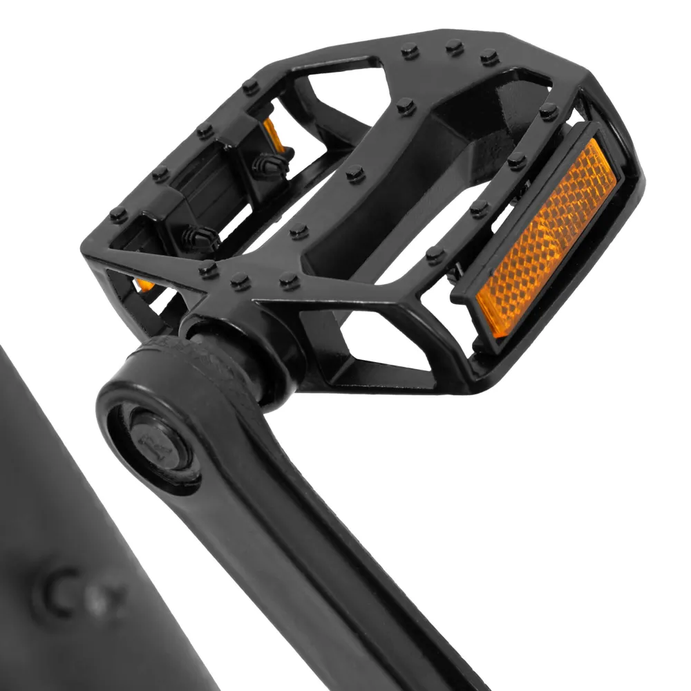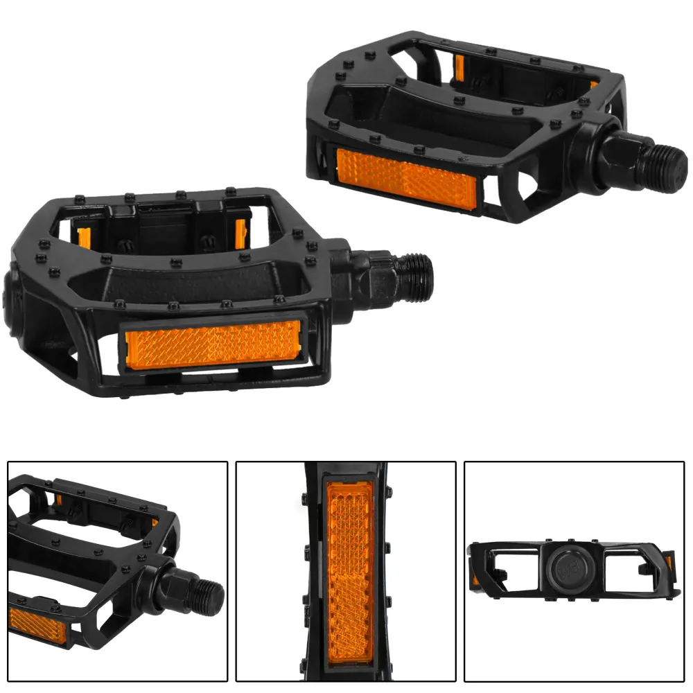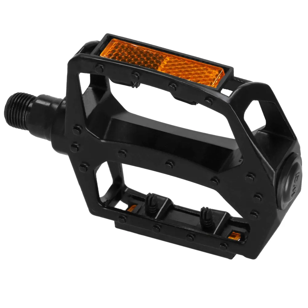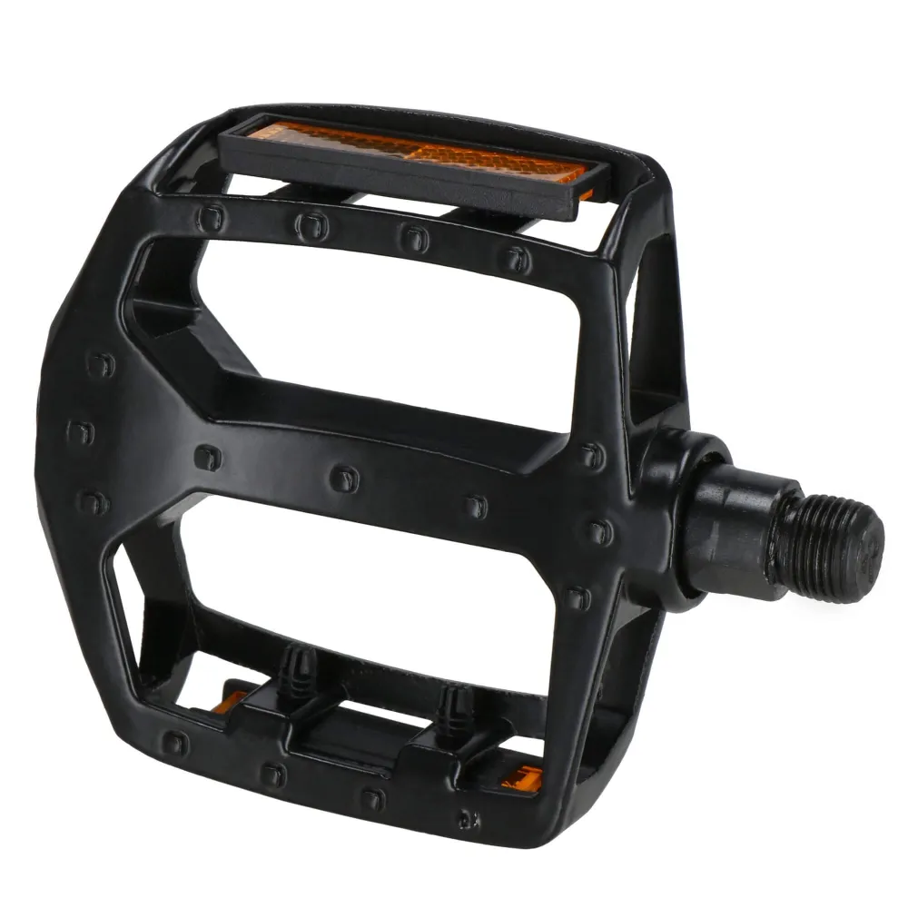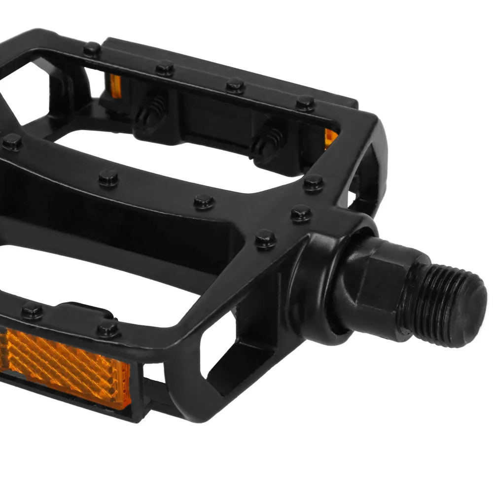 Odolné pedále z hliníka s univerzálnym závitom 9/16" sú ideálne pre MTB, cestné aj BMX bicykle. Majú protišmykový povrch pre bezpečnú jazdu a reflexné prvky pre lepšiu viditeľnosť. Jednoduchá montáž a dlhá životnosť z nich robia praktickú voľbu pre každého cyklistu.