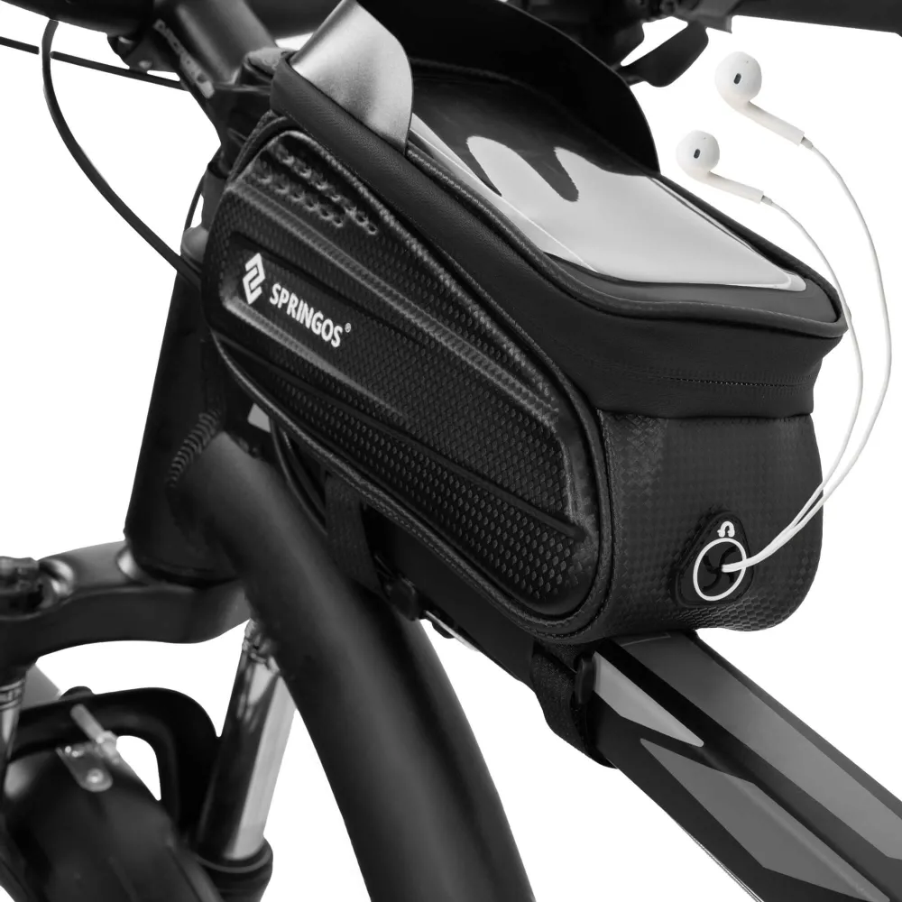 Taška na bicykel s miestom na telefón SPRINGOS BA0090 je ideálnym doplnkom pre všetkých cyklistov, ktorí chcú mať svoje nevyhnutnosti stále po ruke. Vodeodolné prevedenie chráni obsah pred dažďom aj striekajúcou vodou, zatiaľ čo priehľadný dotykový panel umožňuje pohodlné ovládanie telefónu bez nutnosti jeho vybratia. Taška je vybavená výstupom na slúchadlá , takže si môžete užívať obľúbenú hudbu aj počas jazdy.