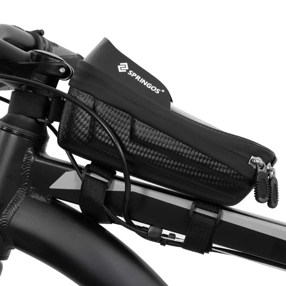 Taška na bicykel s puzdrom na telefón SPRINGOS BA0094 je ideálnym riešením pre cyklistov, ktorí chcú mať svoj telefón a nevyhnutnosti neustále po ruke. Ponúka priehľadné dotykové puzdro , vďaka ktorému môžete mobil pohodlne ovládať aj počas jazdy. Integrovaná slnečná clona zaisťuje dobrú viditeľnosť displeja aj za silného slnečného svitu. Taška je vyrobená z vodeodolného materiálu , ktorý ochráni obsah pred dažďom alebo striekajúcou vodou.