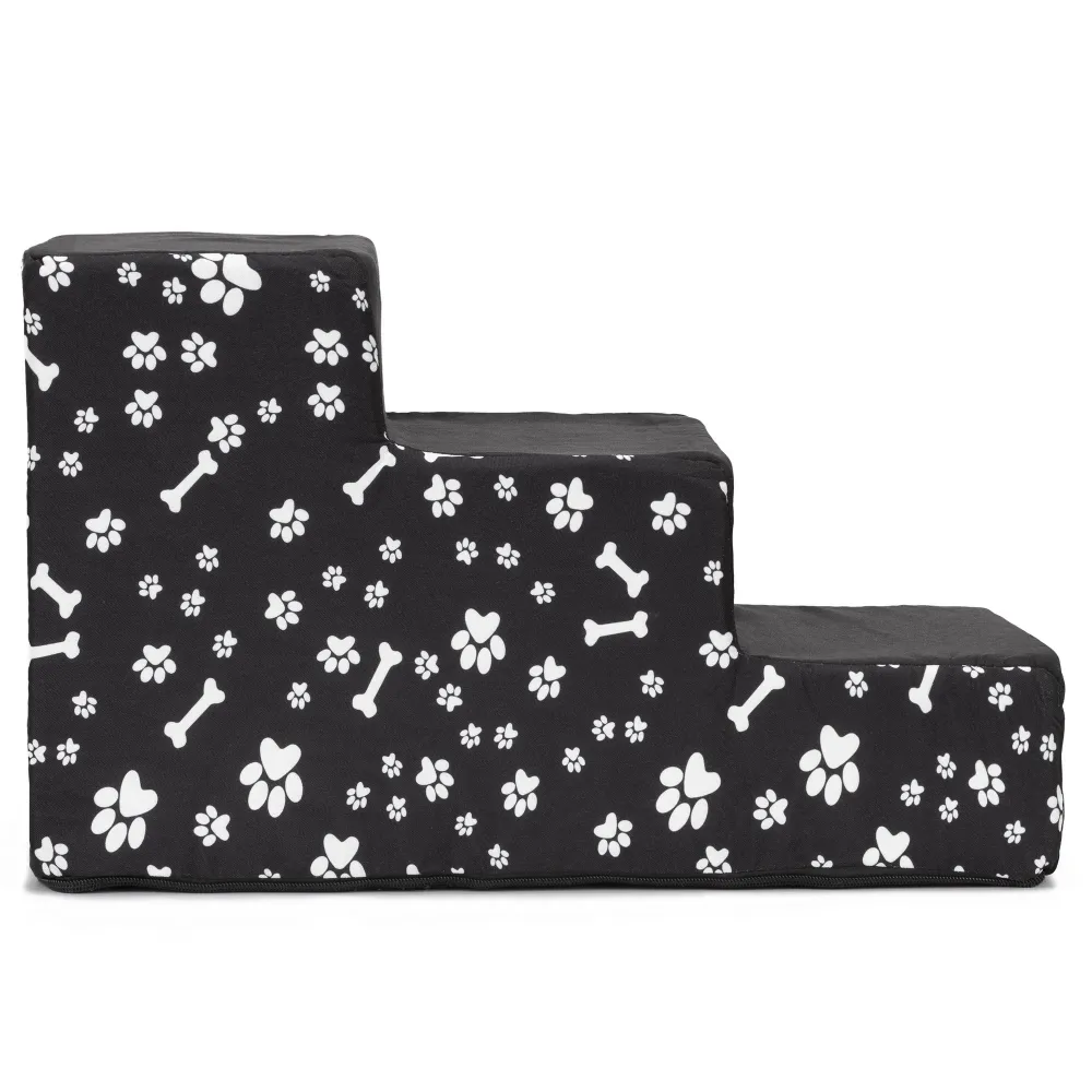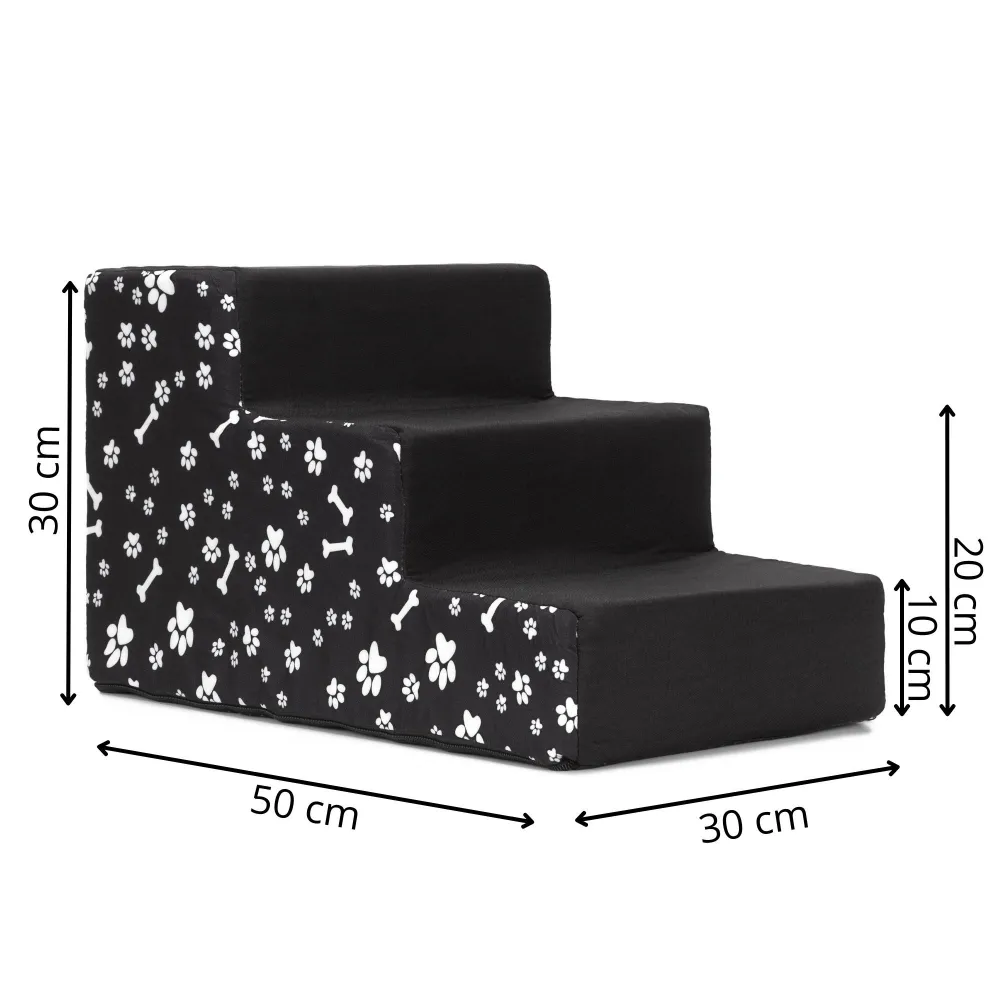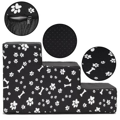 Schodíky pre psa 50x30x30 cm SPRINGOS PA0340 čierne s bielymi motívmi