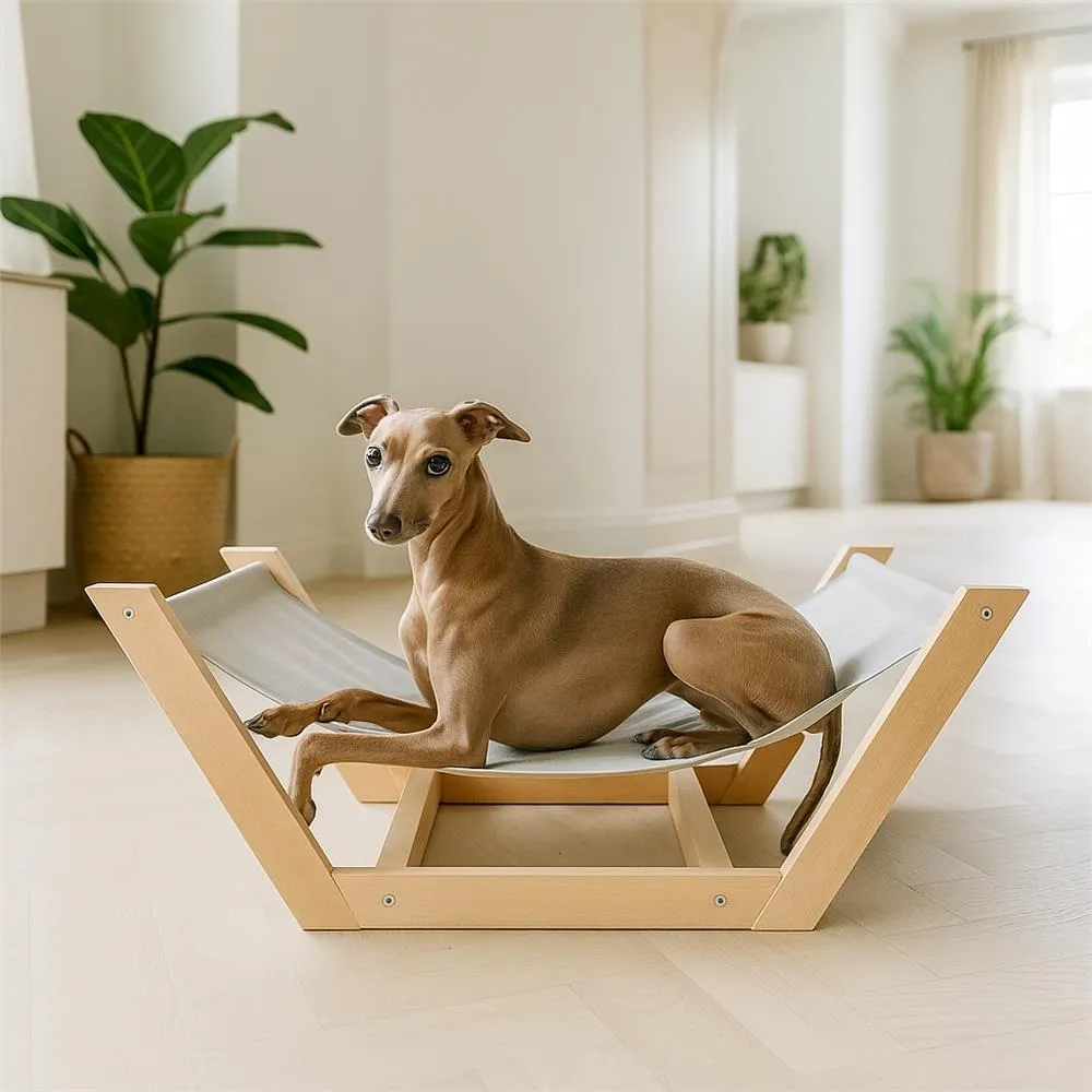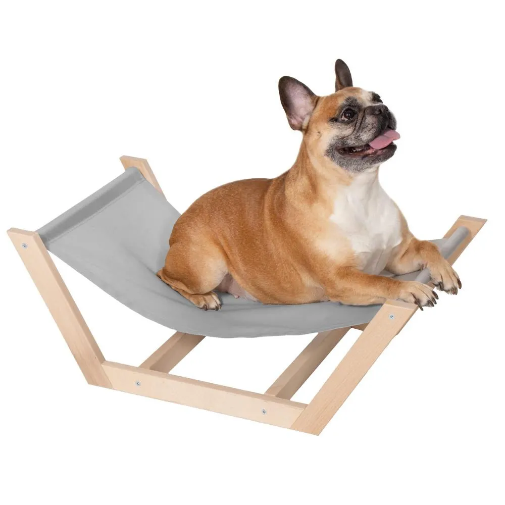 Kreslo pre psy a mačky s masívnou drevenou konštrukciou z pevného bukového dreva a odolným sedákom. Vodeodolná tkanina a silné švy zaručujú dlhú životnosť a ľahké čistenie. Lehátko je ideálne pre všetky plemená mačiek a malé plemená psov. Jeho ľahkosť a mobilita uľahčujú prenášanie. Pohodlné a vodeodolné lehátko má trvalo pripevnené plátno a unesie až 120 kg.