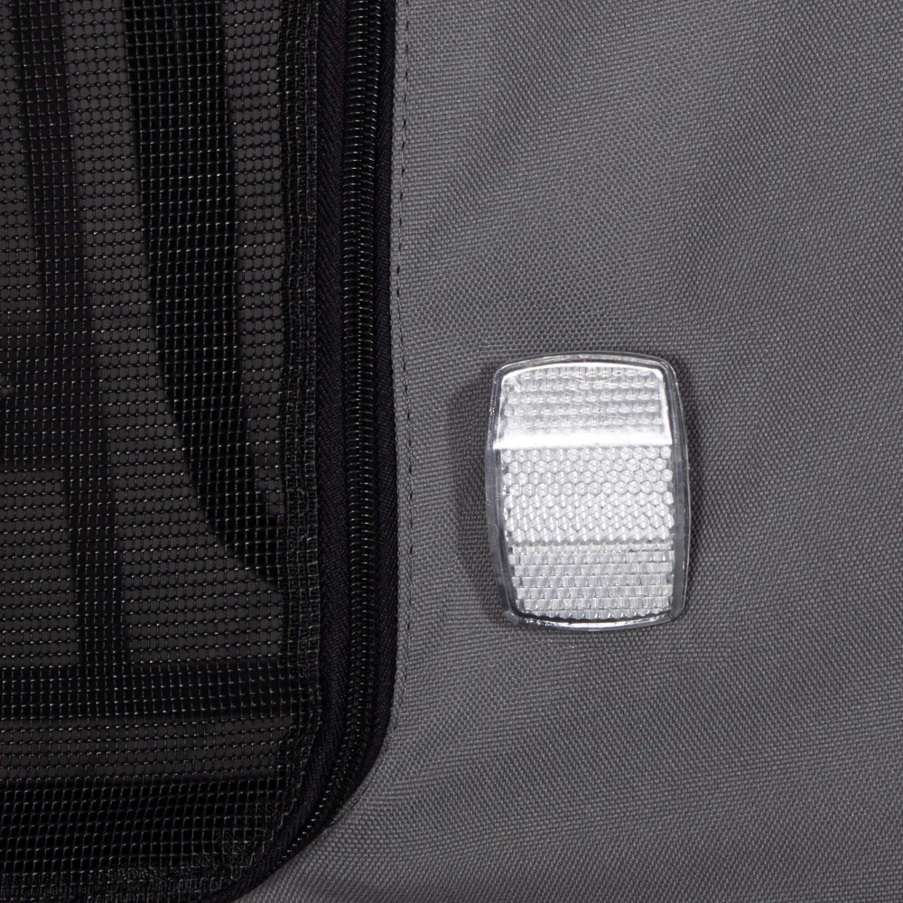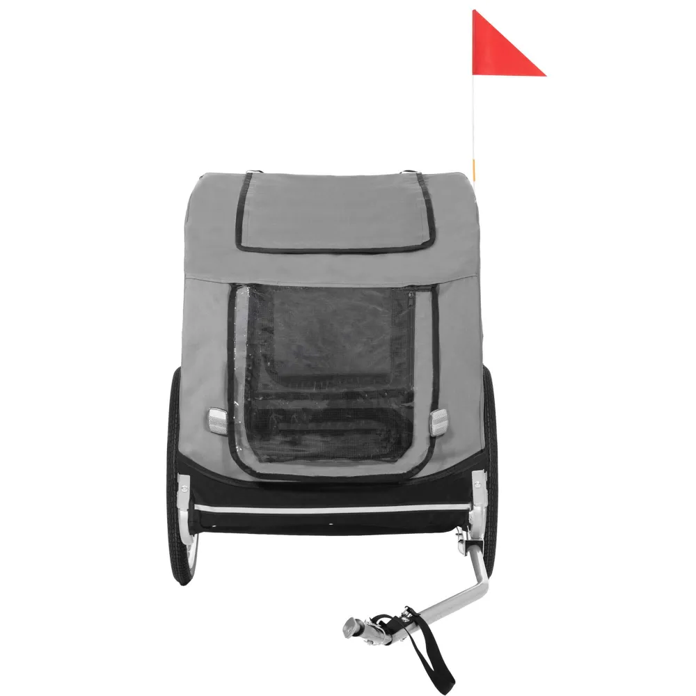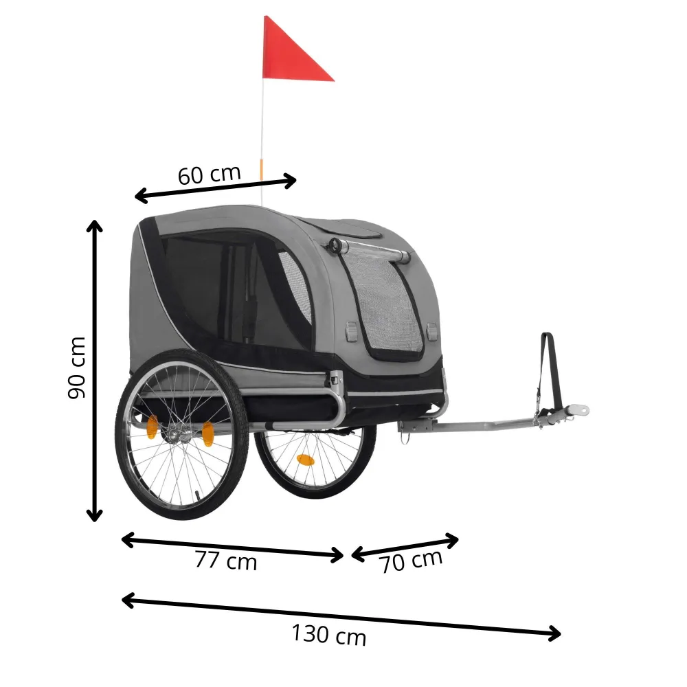 Vozík za bicykel pre psa ponúka vodeodolný materiál, ktorý ochráni vášho maznáčika za každého počasia. Má dva vstupy. Veľké okná z priedušnej sieťoviny a reflexné prvky zaisťujú bezpečie aj ventiláciu. Podlaha je vystužená a obsahuje kovové očko na pripevnenie vodidla. Kovové oje s pevným látkovým pásom umožňuje ľahké a bezpečné uchytenie k bicyklu. Tento vozík je spoľahlivý spoločník pre komfortné a bezpečné výlety s vašim psom v prírode.