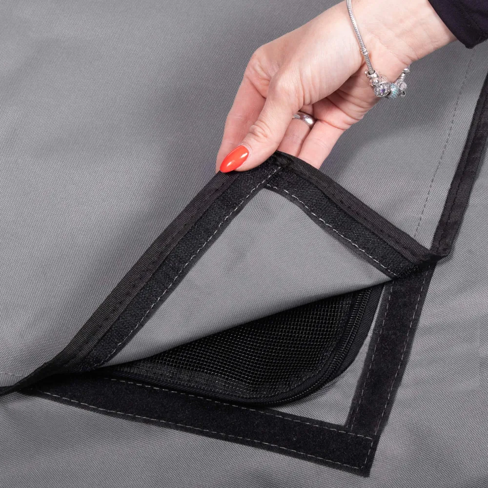 - predný poklop dvojitý z priedušnej sieťoviny a vodeodolnej fólie
