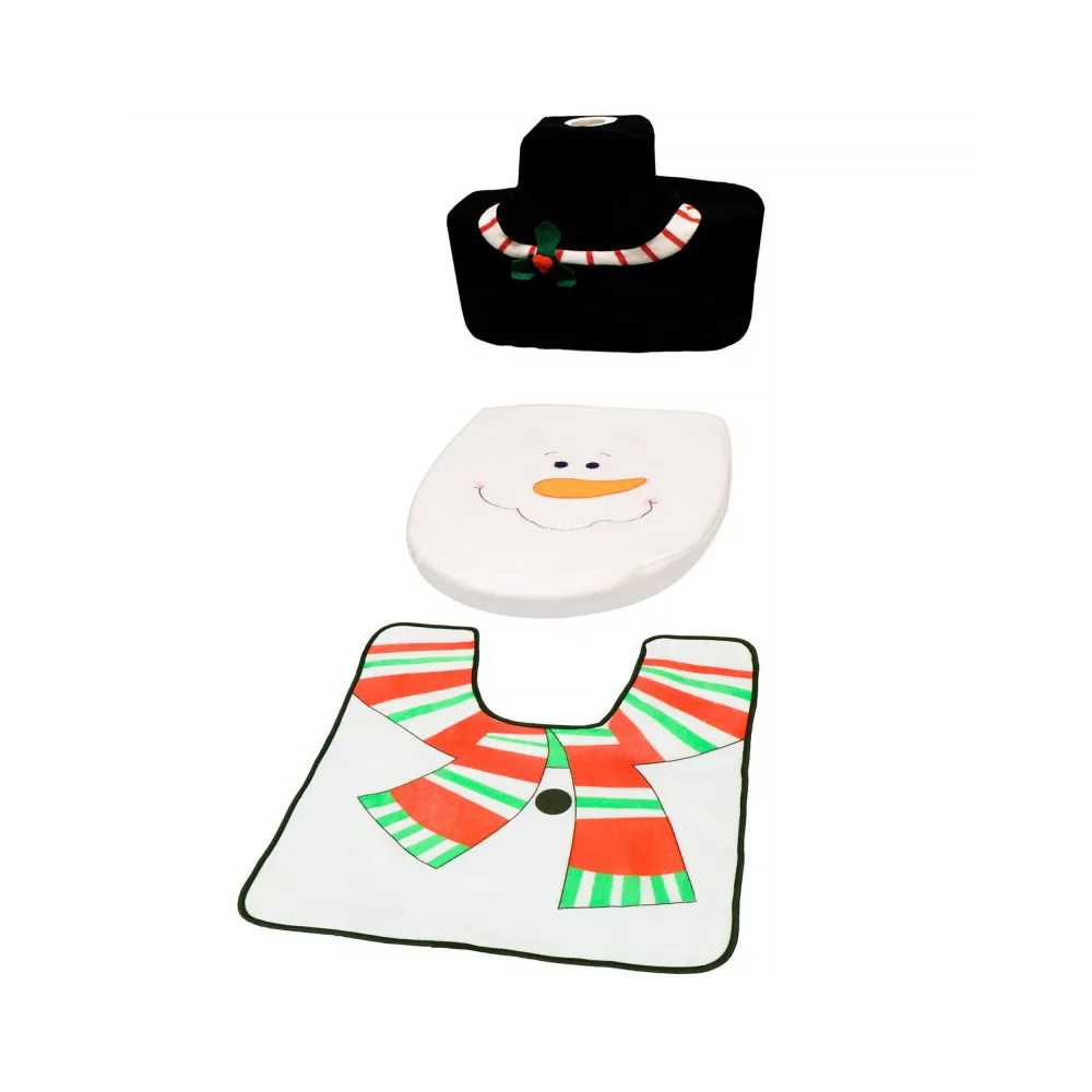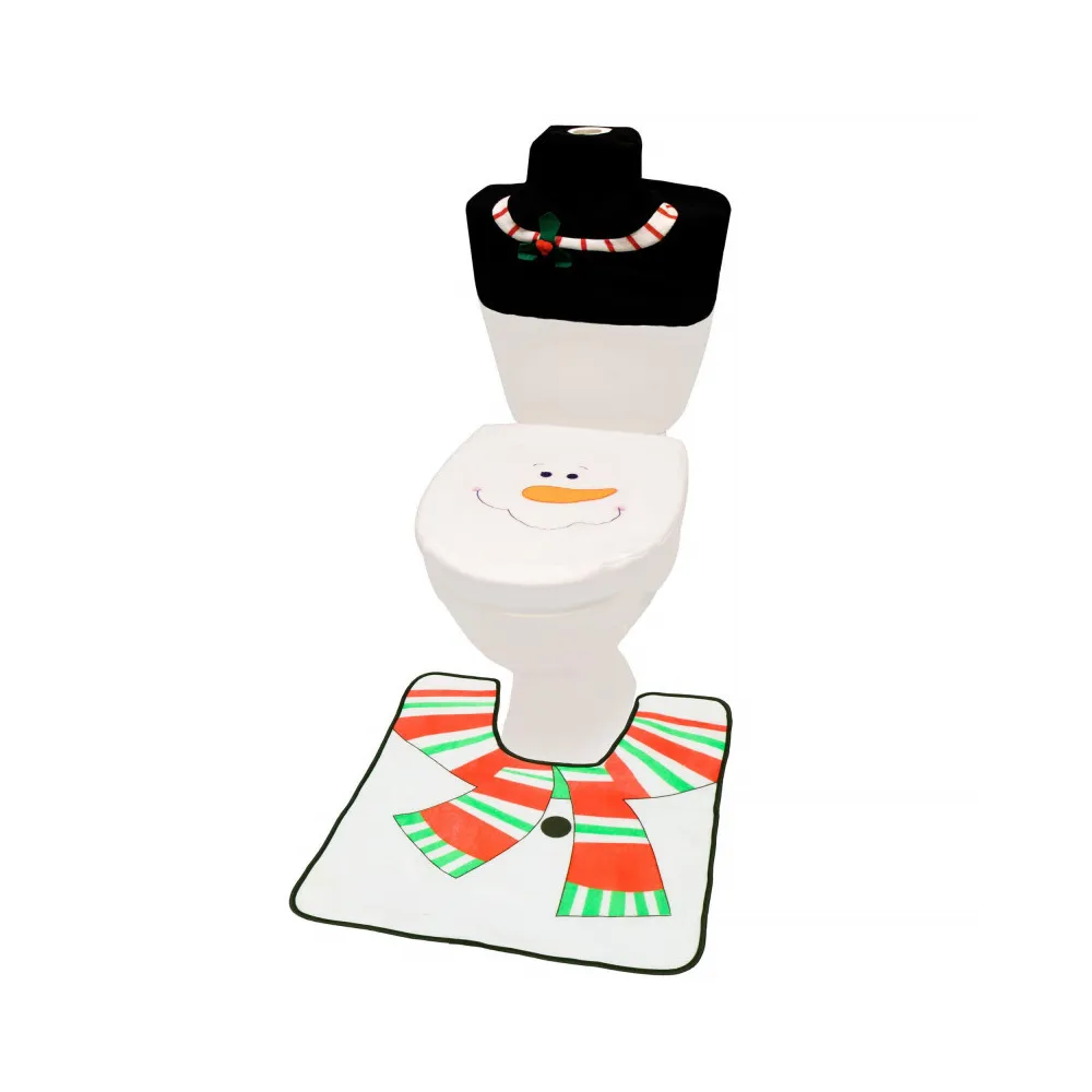 Trojdielny set predložiek k WC s motívom usmievavého snehuliaka. Set obsahuje vykrojenú predložku pred WC, kryt dosky a kryt nádrže s otvorom na toaletný papier. Univerálne prevedenie pre väčšinu WC s nádržkou na vodu. Prekvapte svojich blízkych alebo návštevu originálnou a úsmevnou dekoráciou.