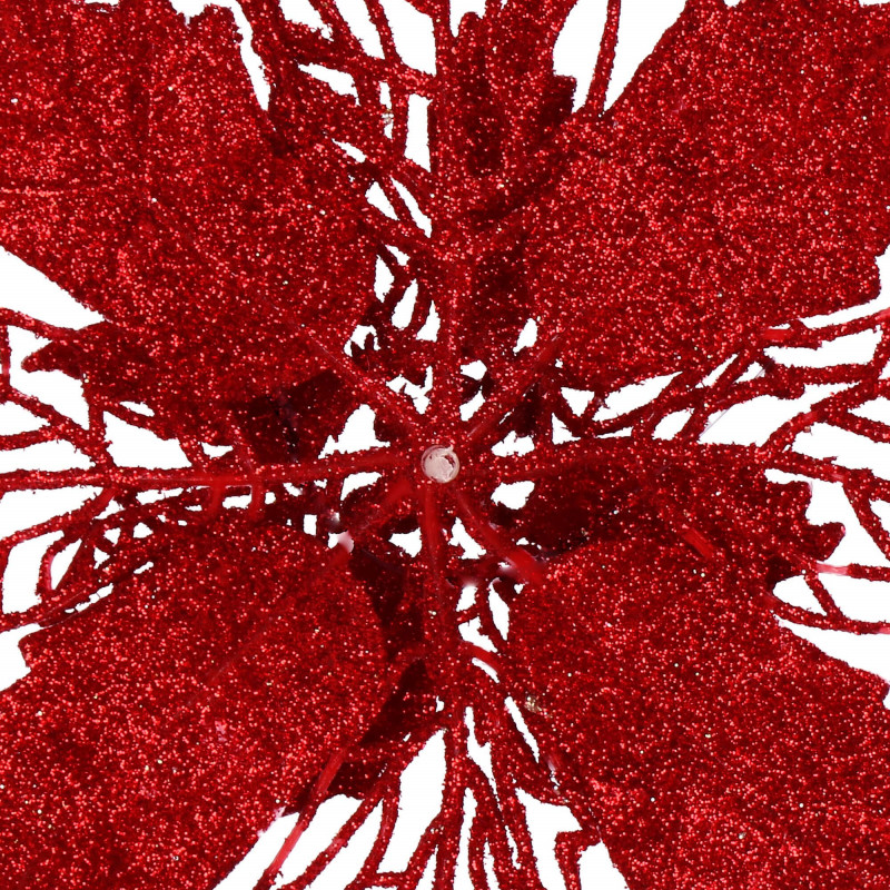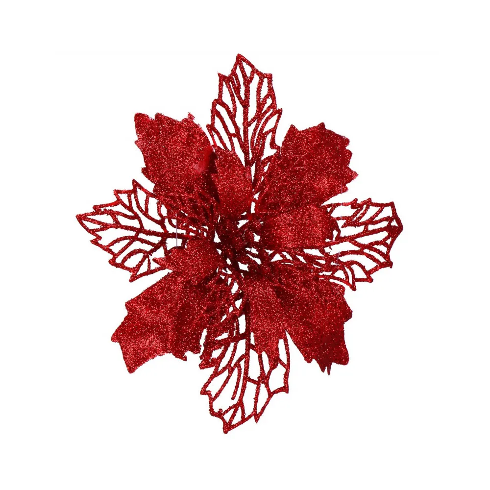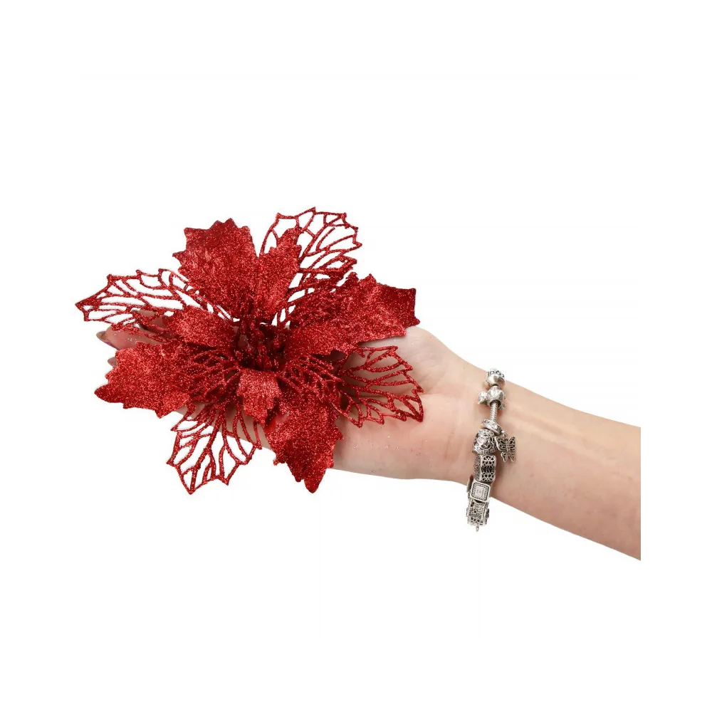 Umelý kvet vianočnej ruže s okvetnými lístkami zdobenými trblietkami. Realistické spracovanie, ohybná stonka. Vhodné do rôznych vianočných...