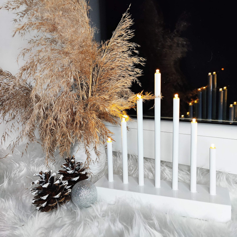 LED vianočný svietnik - 7 sviečok, 20cm, 3xAA, biely