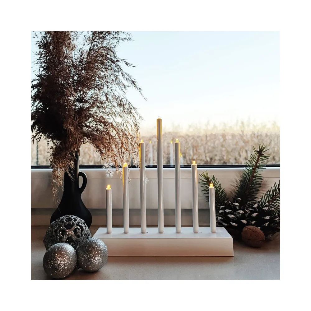LED vianočný svietnik - 7 sviečok, 20cm, 3xAA, biely