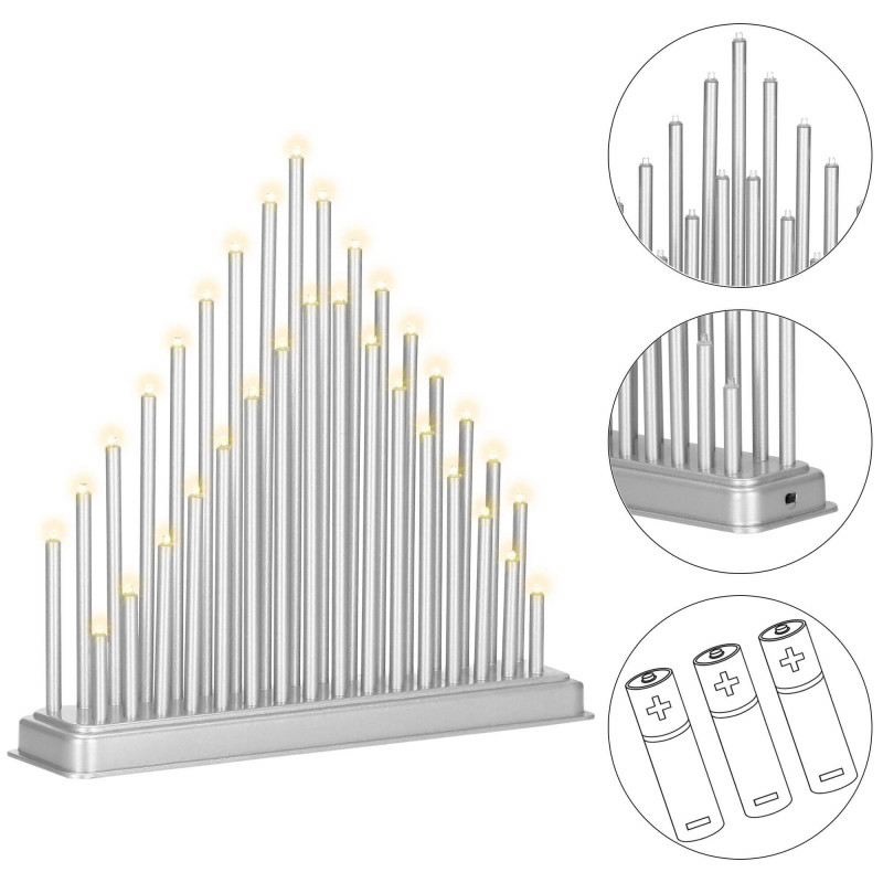 LED vianočný svietnik - 33 sviečok, 32cm, 3xAA, strieborný