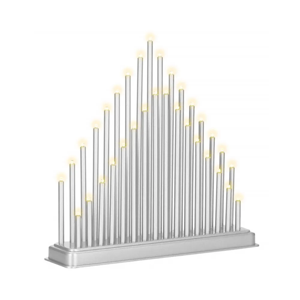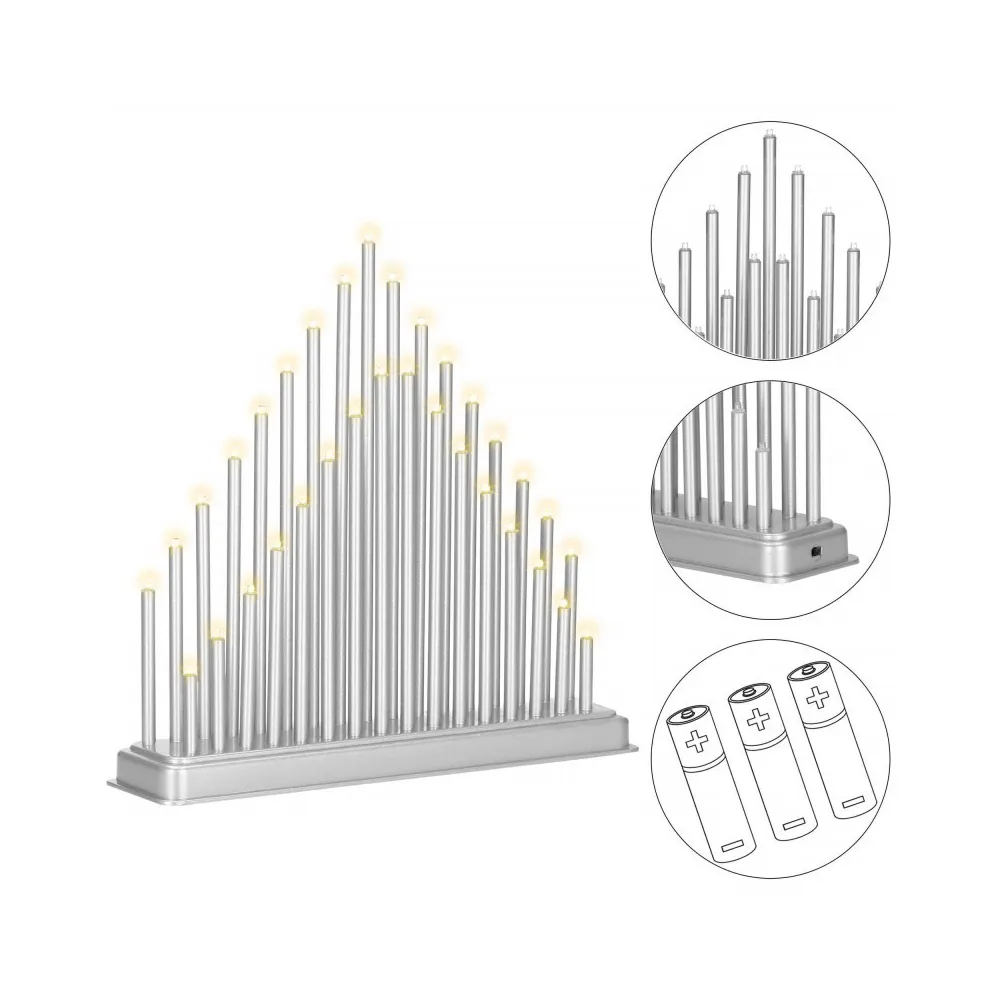 LED vianočný svietnik - 33 sviečok, 32cm, 3xAA, strieborný