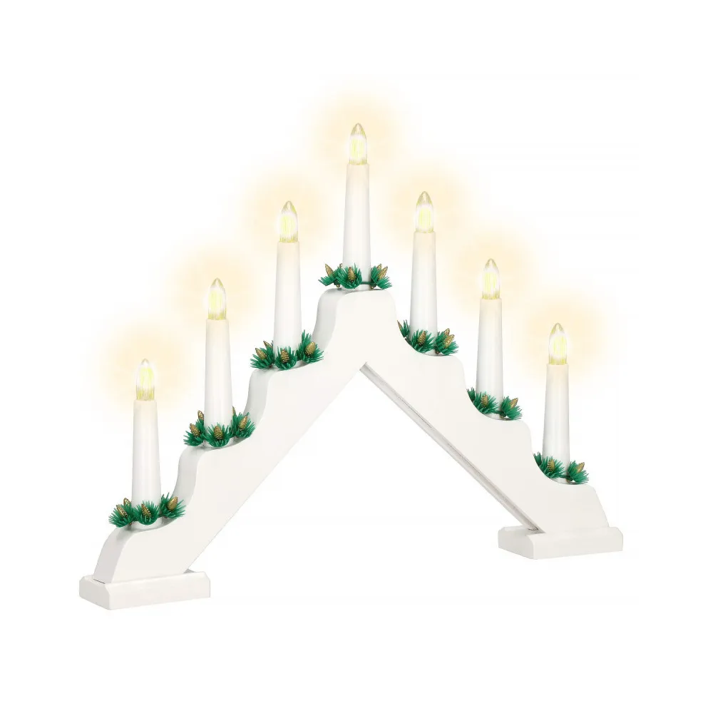 LED vianočný svietnik - 7 sviečok, 30cm, 2xAA, biely
