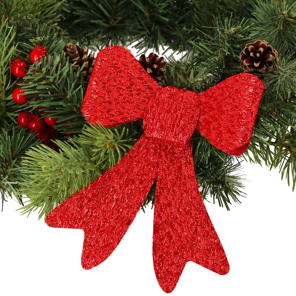 Sada 2 ks vianočných mašlí s drôtikom, vďaka ktorému sa dá ľahko a rýchlo pripevniť na vetvu vianočného stromčeka, rákosie alebo girlandu. Materiál príjemný na dotyk. Perfektný na zdobenie darčekov, vencov, tvorbu vianočných dekorácií alebo ako ozdoba vianočného stromčeka.