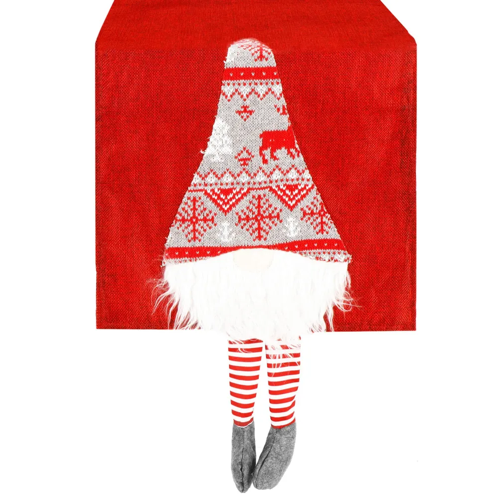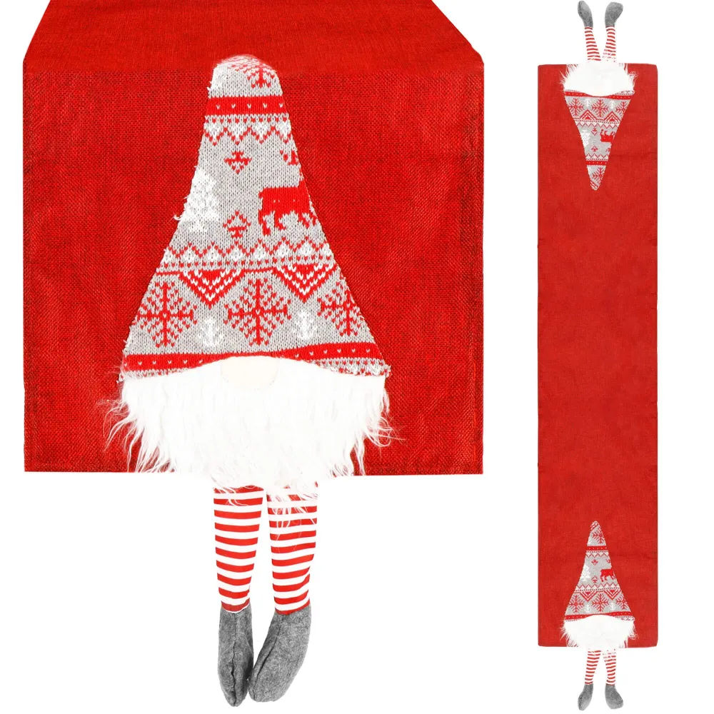 Bohato zdobený vianočný behúň na sviatočný stôl. Plastický vzor škriatka Gnoma s vysokou čiapkou a visiacimi nohami. Rozmery 180x33,5 cm. Vianočná dekorácia, ktorá sa stane ozdobou každého interiéru a dodá mu krásne zimné kúzlo.